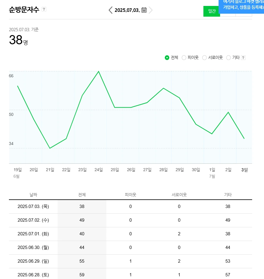 순방문자 수도 두자리로 떨어집니다.