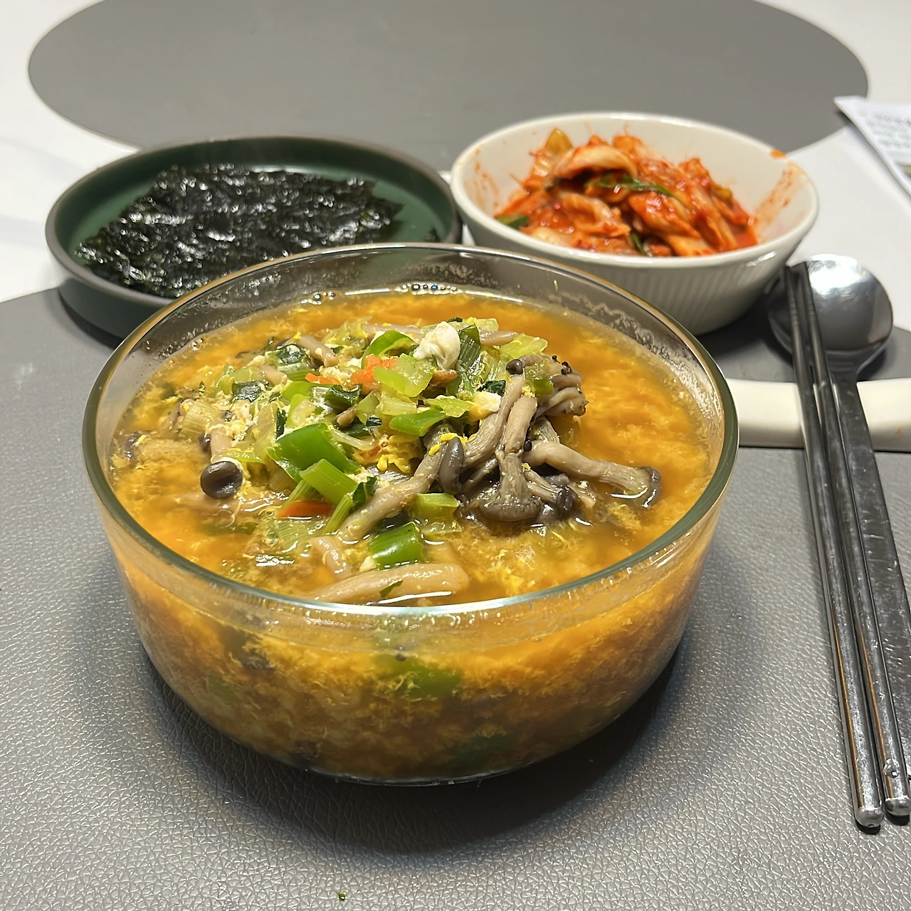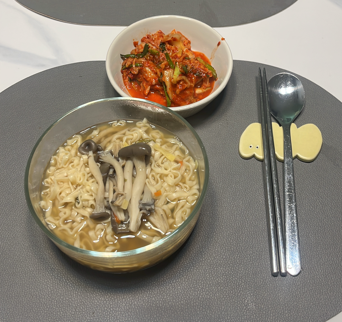 (*칼국수 라면입니다. 면을 직접 만든게 아닙니다… 버섯만 왕창 넣었습니다.)