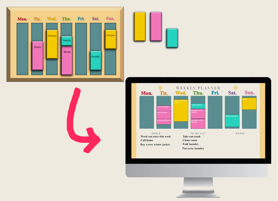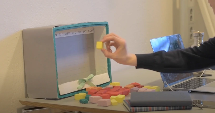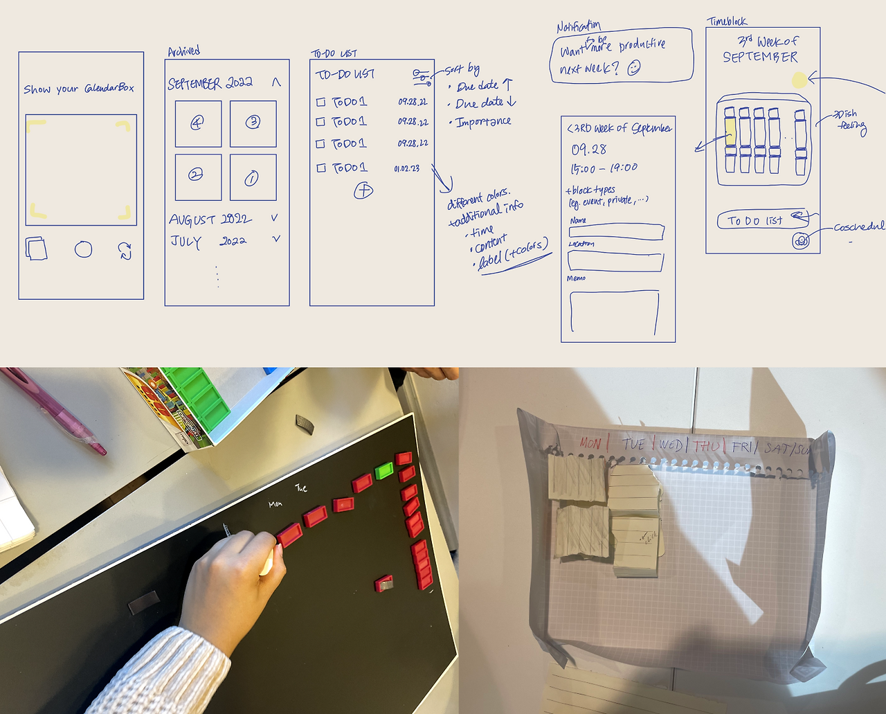 이후 사용성 테스트에서 얻은 피드백을 기반으로 우리는 Lo-fi 프로토타입을 실제 제품과 유사하도록 제작한 프로토타입을 의미하는 hi-fi 프로토타입으로 발전시켰다. 특히 우리 제품은 물리적인 부분과 디지털 부분으로 나뉘어 있는데, 물리적인 부분은 스티로폼, 자석 등 실제 재료를 사용해 만들었고 디지털 부분은 Figma (인터페이스 디자인 툴)와 Protopie (인터랙티브 프로토타이핑 툴)을 이용해 제작했다.