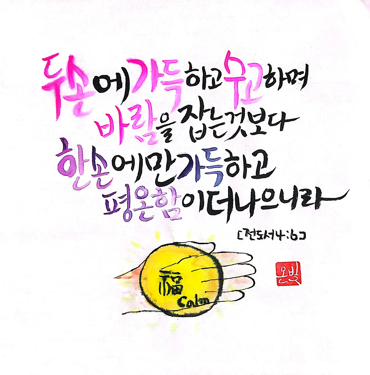 한 손에만 가득하고 평온함이 더 나으니라