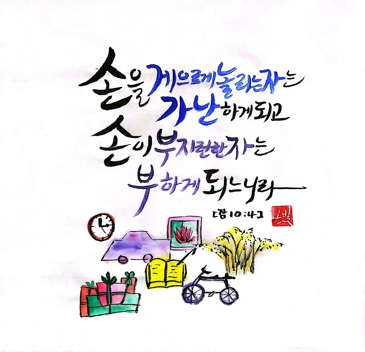 손을 게으르게 놀리는자는 가난하게 되고