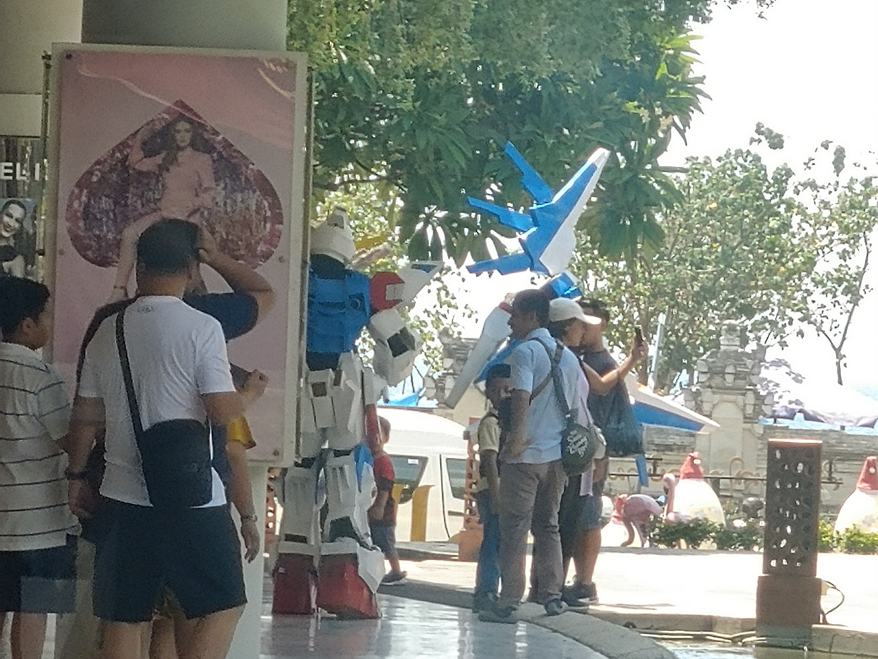 출근하는 건담이라...삶의 애환이 담긴 단어가 환상과 꿈을 상징하는 단어와 만나 센세이셔널한 단어가 되었다. 어쨌든 그 사람은 오늘도 싸울 것이다. 즐길 것인가? 아무튼 피할 수 없다. 수많은 아이들에게 포즈를 잡아주고 사진을 찍고 사진값을 받을 것이다. 이 작렬하는 적도의 태양 아래 그늘도 없는 저 광장에서 그는 몇 시간이고 버텨낼 것이다. 최첨단 기술이 집약된 특수 복장이 아닌 이상 저 건담의 조종사는 지금 여기 있는 사람 중 누구보다 치열하게 견디어 내고 있을 것이다.