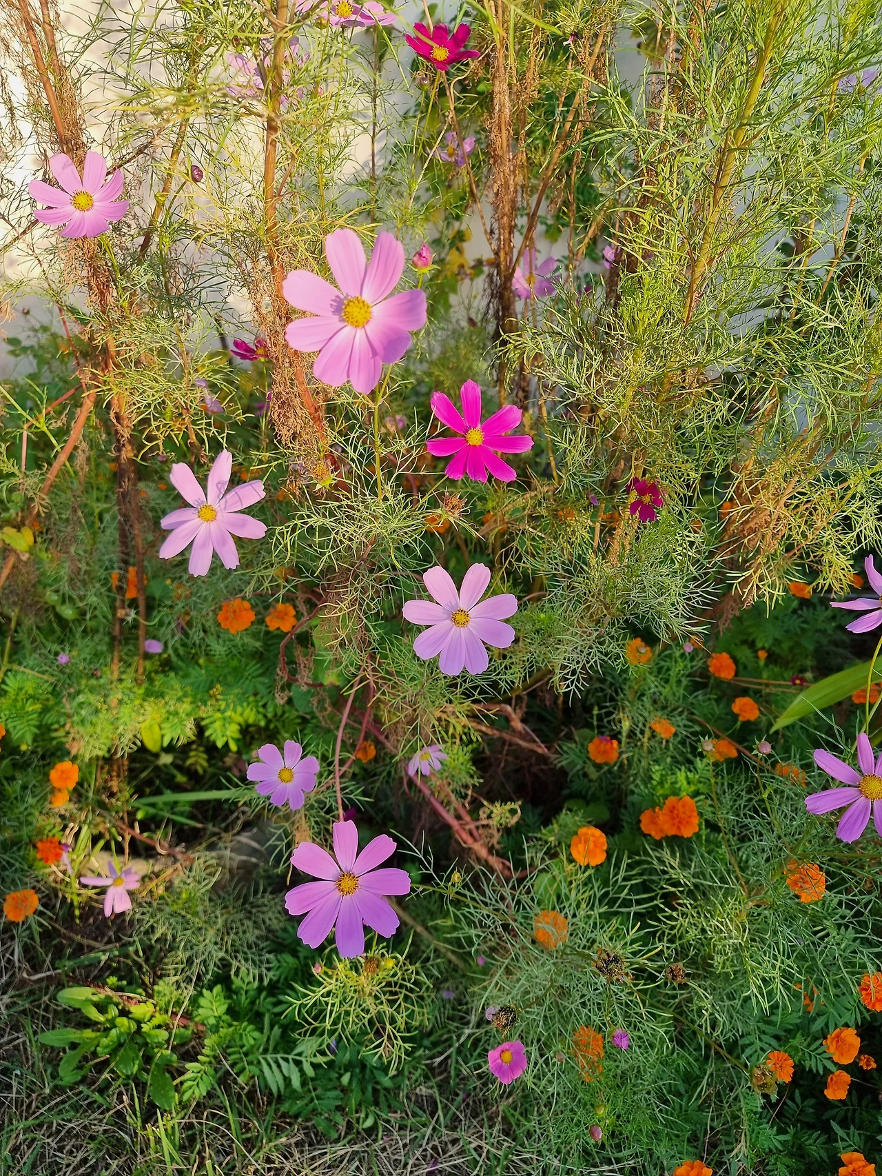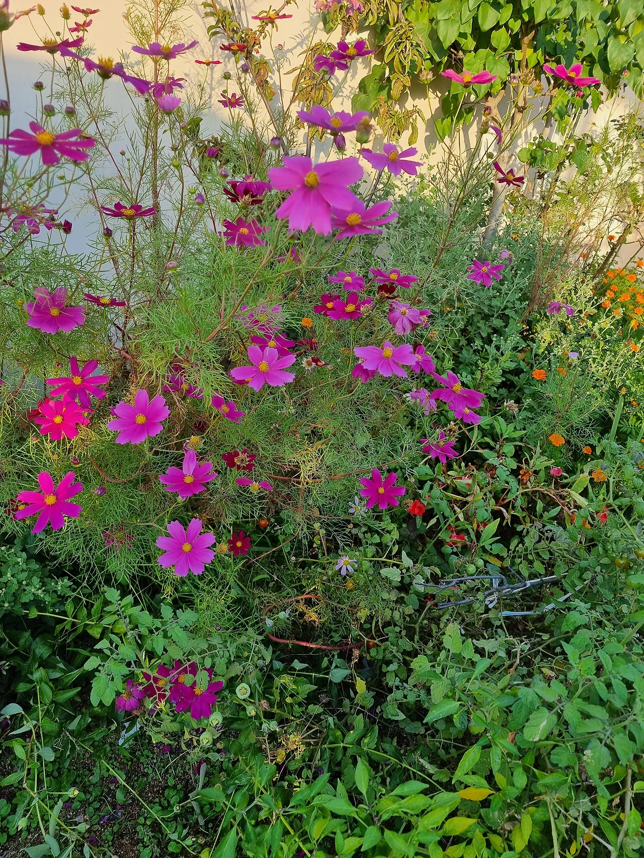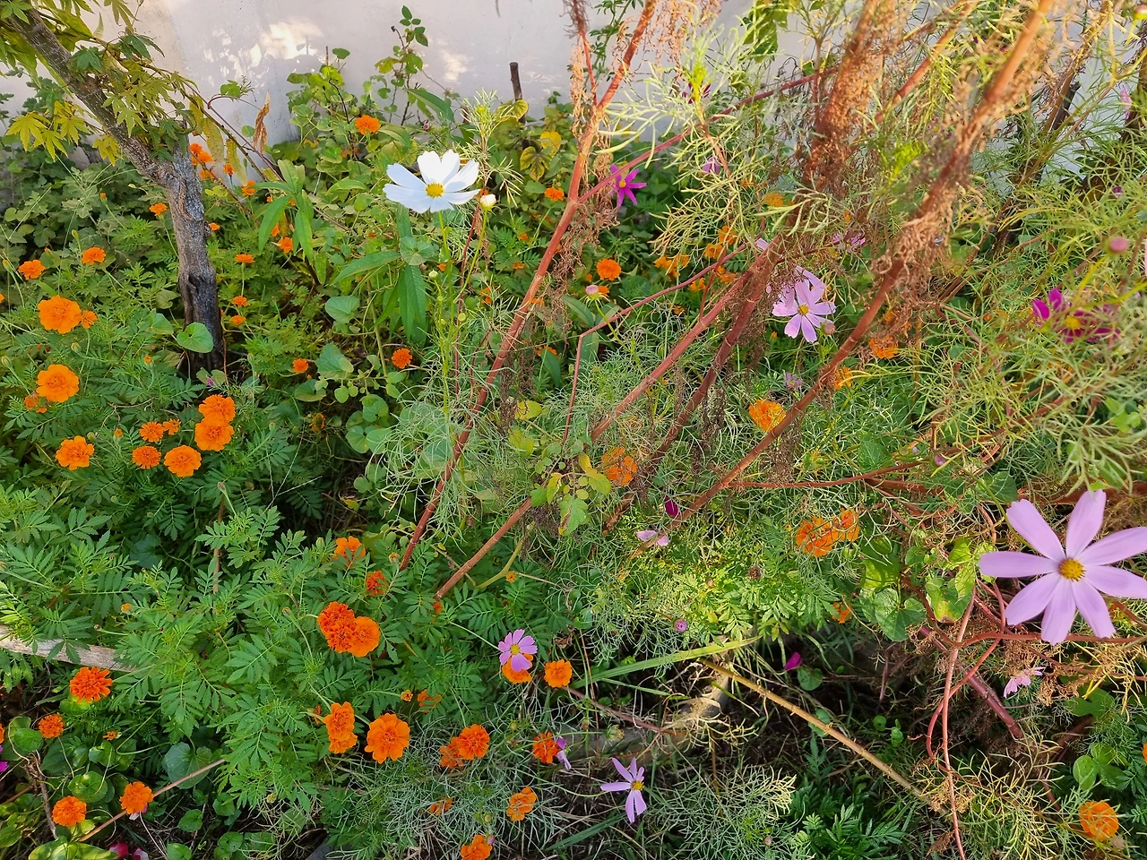 이 코스모스가 어느 날 우리 집 옥상에 피었다.