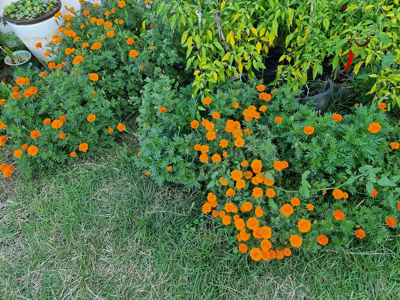 '선명하고 어여쁜 주황색 메리 골드야. 이렇게 풍성하게 꽃잎을 피어내느라 고생이 많았지. 이 가을은 전부 네 것이란다. 너도 이제 바람을 즐기렴'