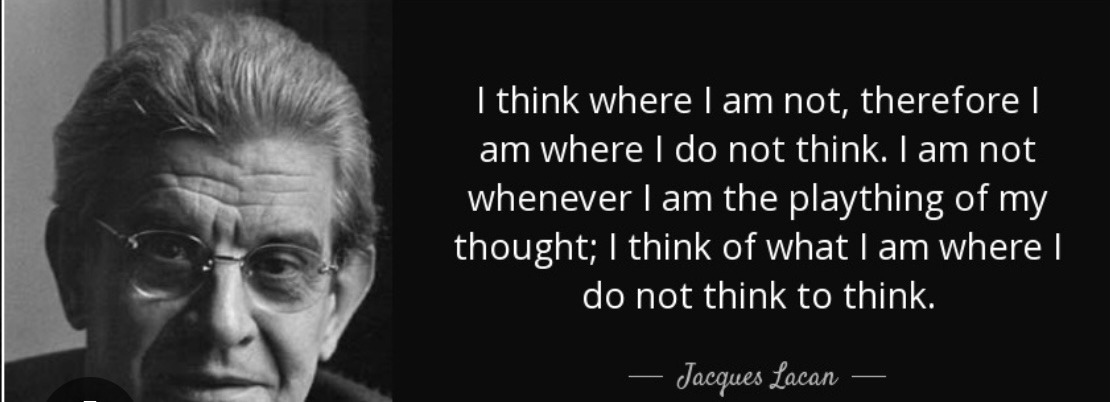라깡이 말한 것처럼 "나는 내가 존재하지 않는 곳에서 생각한다. 고로 나는 내가 생각하지 않는 곳에서 존재한다(I think where I am not, therefore I am where I do not think)“면 진정한 나는 나의 사유와 의식의 이면에 존재할 것이다.