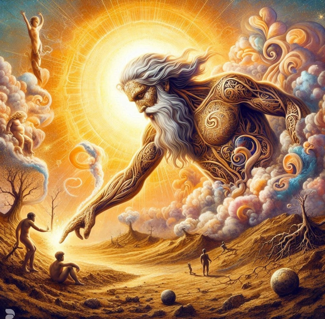 창세기는 이런 서사적 플롯과 전혀 다르다. 우주 창조의 목적은 인간의 창조에서 완성된다. 엘로힘이란유일신의 특별한 목적으로 창조된 그의 형상인 인간에게 고귀한 위임이 부여된다. 대부분의 기원 신화가 <고역사적 사건의 상징적 비유>라면, 창세기는 <원역사적 사실에 대한 계시적 비유>이다.