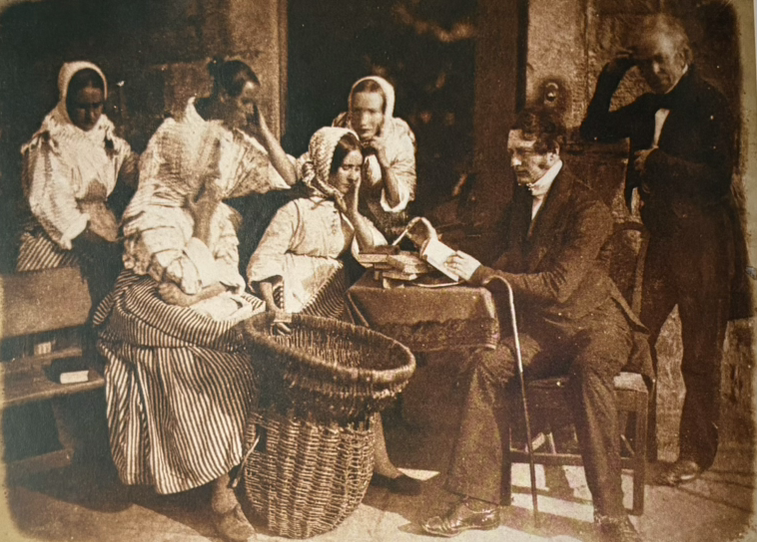 그러나 사진 예술이 등장하면서 그림자의 존재가 의미를 같게 되었다는 사실을 강조한다. 사진을 찍으려면 조명이 필수적인데, 그것이 태양의 빛이든 인공조명이든 그림자가 나오게 된다. 그는 최초로 종이에 인쇄된 사진 중에 최고의 사진은 데이비드 옥타비우스 힐과 로버트 아담슨이 에든버러에서 제작한 작품들이라고 주장한다. 그는 그들의 작품 중 <목사의 방문>이란 사진을 대표적 예로 든다.