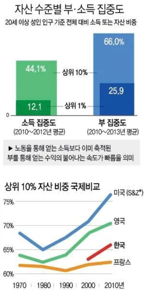 후기 자본주의 사회 혹은 글로벌 자본주의 사회에서 국가와 국가 간의 불평등뿐만 아니라 한 국가 내에서도 계층간, 지역간, 세대간 불평등이 심화되고 있는 현상의 이면에는 어떤 요인이 있을까? 피게티는 전작에서 그 주요 요인으로 금융 자본이 근로 소득을 앞서는 현상으로 설명한다. 즉 ‘돈이 돈을 버는 속도가 사람이 돈을 버는 속도보다 더 빠르기 때문에’ 가진 자와 못 가진 자의 격차는 심화될 수밖에 없다는 것이다. 이는 급속성장한 자본주의의 모순들을 가장 많이 안고 있는 한국 사회에서도 예외는 아니다.