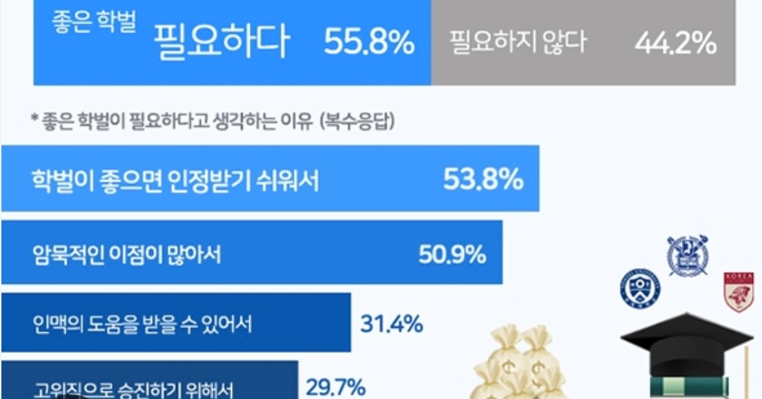 예를 들어 한국 사회에서는 학벌이란 새로운 신분이 등장하여 불평등을 심화시키고 있는데, 소위 정치-경제-언론 엘리트들의 상당수는 학벌이란 새로운 인맥으로 연결되어 지속적으로 자기들만의 고유한 네트워크를 형성하며 기득권을 보호하고 있다. 과거에는 익명으로 나오던 출신 대학이 이제는 드라마나 예능에 버젓이 등장하여 그 상표적 가치를 높여가고 있는데, 그 이면에는 언론 엘리트들 중 방송국 PD의 상당수가 거의 비슷한 레벨의 출신 대학의 분포를 가진 것으로 짐작할 수 있다.