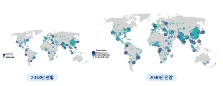 이제 사람에 관한 마지막 주제로 넘어가자. 그것은 바로 메가시티의 등장이란 주제이다. 1800년에는 세계 인구의 2퍼센트 이하가 도시에 거주했고, 1900년쯤에도 그 비율은 여전히 5퍼센트에 불과했다. 그러나 1950년에는 그 비율이 30퍼센트까지 치솟았고, 2007년은 세계 인구의 절반 이상이 도시에 거주하는 첫 해가 되었다. 2016년의 조사에 의하면 인구 100만 명 이상인 도시가 512곳이었고, 31곳은 1000만 명을 넘었다. 이렇게 1000만 명이 넘는 도시를 <메가시티>라는 특별한 이름이 붙여졌다.