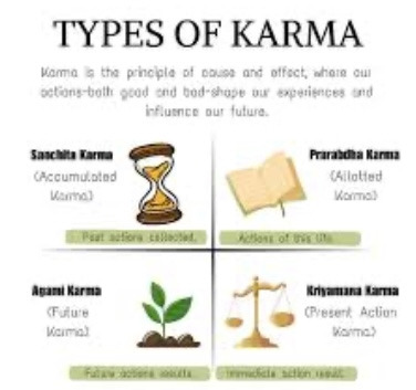 이 생애에서 행한 모든 행위, 혹은 그 결과는 '크리야마나 카르마' 혹은 '아가미 카르미'라고 불린다. 힌두 경전에서는 어떤 종류의 크리야마나 카르마는 즉각적인 결과를 가져오는지 알려준다. 신성한 영혼이나 여인을 죽이는 것과 같이 극히 흉악한 범죄를 저지는 사람은 이 생애에서 그의 나쁜 행위로 인해 바로 고통받는다. 그 밖에 상대적으로 사소한 다른 좋은 혹은 나쁜 행위는 즉각적인 결과를 가져오지 않는다. 그렇다면 자살의 경우는 어떨까? 자살은 큰 실수이다. 왜냐하면 카르마의 힘은 죽음과 함께 멈추지 않는다.