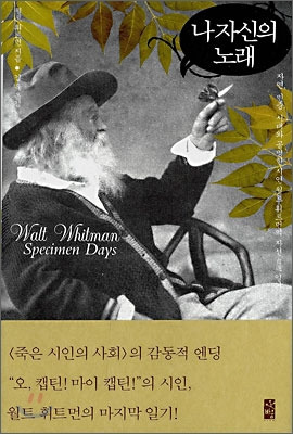 “난 나 자신을 찬미하고, 나 자신을 노래하네, 내가 받아들이는 것을, 당신도 받아들이리라, 내게 속하는 모든 원자가 또한 당신을 이루고 있으니. 난 한가 롭게 내 영혼을 불러내어, 편히 기대어 여름 풀잎의 새싹을 바라보네. 내 혀와 내 피의 모든 원자가 이 흙, 이 공기에서 생겨났고, 여기서 태어난 부모에게서 태어났고, 그 부모는 똑같이 그 부모의 부모에게서 태어났네. 이제 37세의 더 할 나위 없이 건강한 나는 시작하네, 죽을 때까지 멈추지 않길 바라며. 이념적 교의와 학파들은 보류해 두라, 현재의 상태를 충분히 알고 잠시 물러나되, 결 코 잊지 말기를, 나는 좋든 나쁘든 품을 것이며, 나는 모든 위험을 무릅쓰고 말하리라, 원초적 힘을 가진 거침없는 자연을."