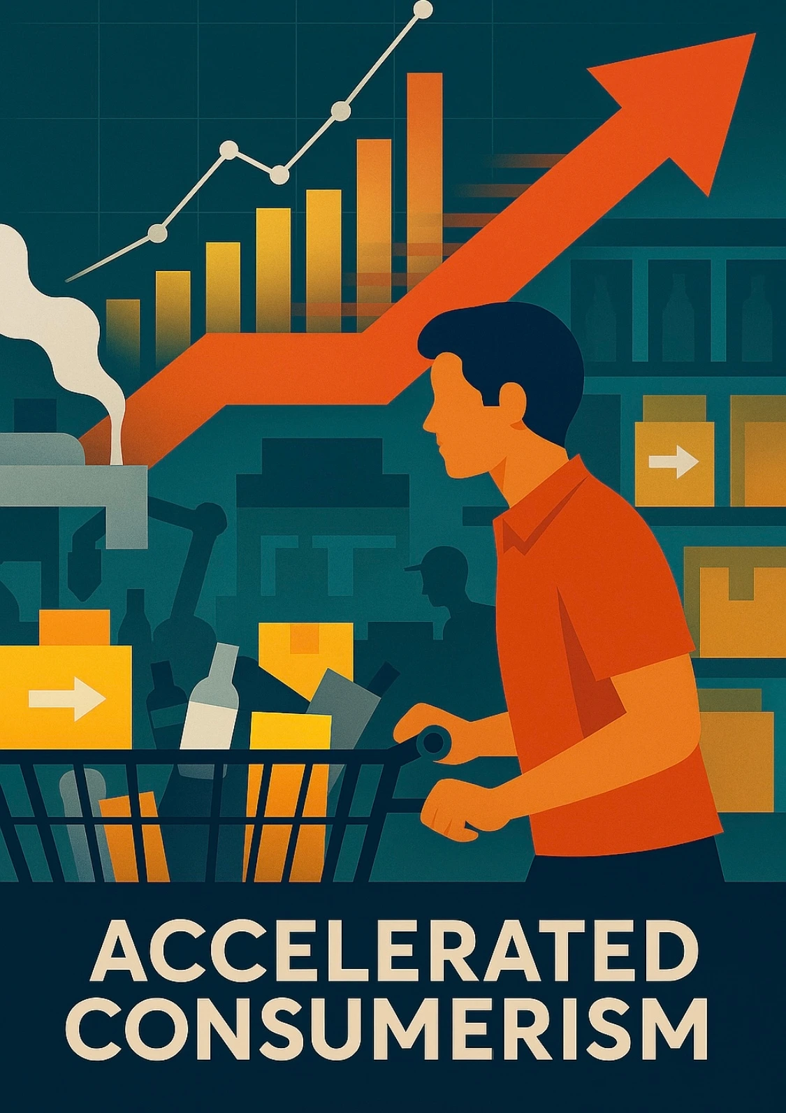 소비 영역의 많은 발전 가운데 두 가지가 특히 두드러진다. 대량판매시장에서 유행의 동원은 의류, 장신구, 장식품에서뿐만 아니라 광범위한 생활방식 및 여가활동의 부분(레저와 운동습관, 대중음악의 스타일, 온라인 스트리밍 산업과 아동용 게임 등)에서 소비 속도를 가속화하는 수단을 제공한다. 두 번째 경향은 재화의 소비에서 서비스의 소비 즉 개인, 사업, 교육, 보건서비스뿐만 아니라 머리를 식히는 오락거리 등으로 이행했다는 점이다. 이와 같은 서비스(박물관 관람, 록 콘서트나 영화 보기, 강연이나 헬스클럽에 다니는 것)의 수명은 자동차나 세탁기의 수명보다 훨씬 짧다.