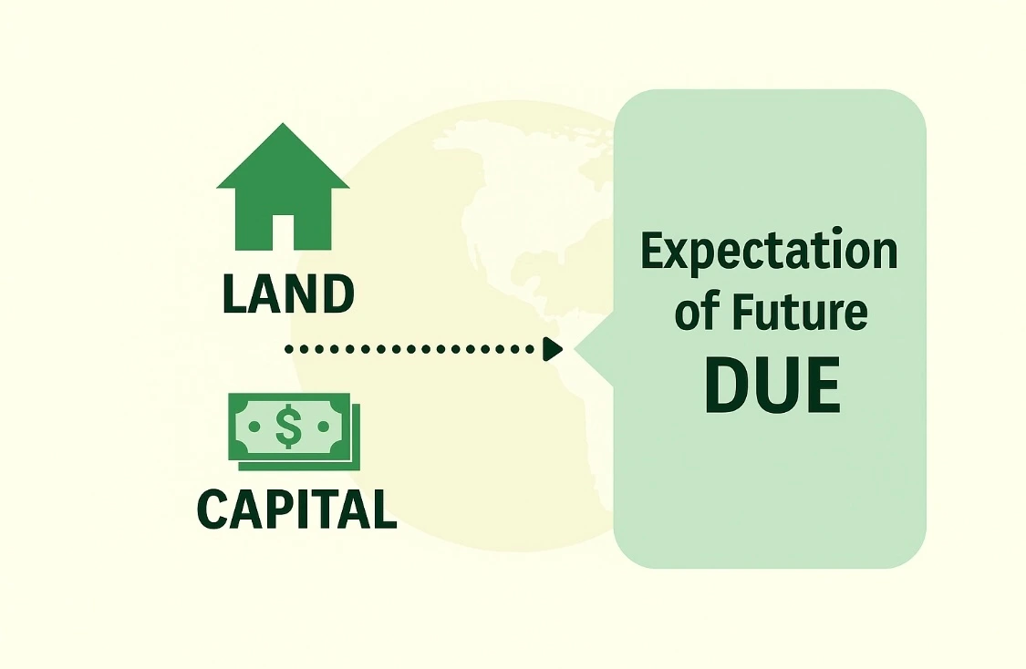그러므로 자본주의의 문제를 부동산시장의 맥락에서 생산자본 순환과 의제자본(擬制資本, fictitious capital: 실제 생산 활동에서 발생하는 가치가 아니라, 미래의 잉여가치에 대한 청구권을 나타내는 가공의 자본) 순환이 신용체계 내에서 어떻게 결합하는 지를 알아야 한다. 이제 너무 전문적 용어가 많이 나와서 머리가 아프기 시작할 것이다. 하비는 다음과 같은 예를 든다. 금융기관들은 개발업자, 토지 소유자, 건설회사에 대출을 해주어 샌디에이고 주변에 방대한 교외 주택을 건설하고 플로리다와 스페인 남부에 고급 콘도를 건설하게 만들어준다. 그러나 이 대출은 2배의 수익을 남길 수 있다는 경기가 좋을 때의 경우를 예상한 것이다. 쉽게 말하면 금융기관마저 투자가 아니라 투기성 대출을 하게 된다는 것이다. 더 심각한 것은 금융기관을 좌우하는 어떤 강력한 국가권력이 이런 부동산 정책을 펼칠 경우이다.