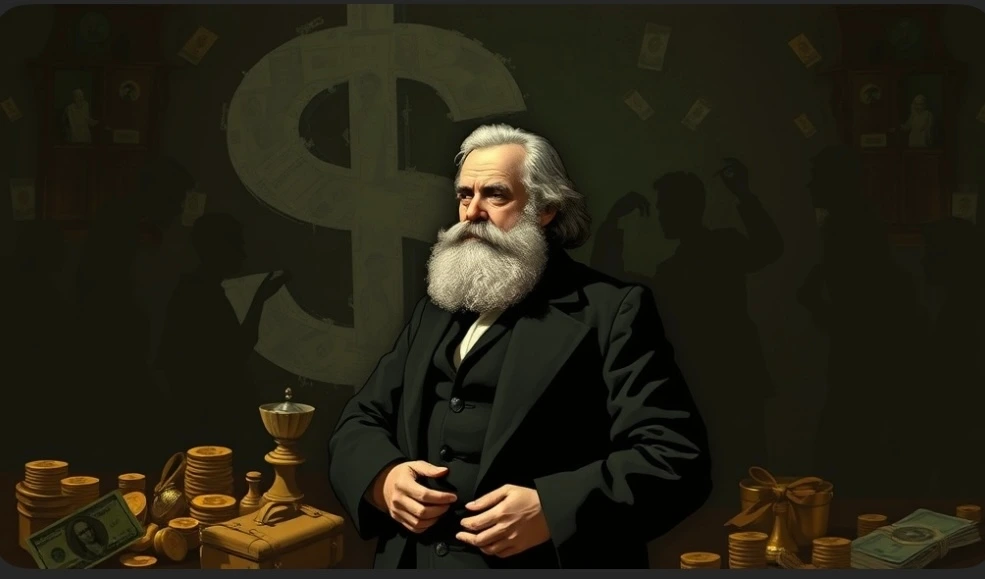 마르크스가 말한 물신성(Fetischcharakter der Ware) 은 사회적 관계가 사물의 성질처럼 나타나는 구조를 가리킨다. 따라서 가장 구체적인 예는 면 티셔츠에 제조원가나 노동조건은 보이지 않고 49,000원이란 가격표만 보이는 현상이다. 소비자들이 이 티셔츠는 49,000원짜리로 인식하는 순간 노동시간, 노동 강도, 공급망 권력, 임금 착취, 유통 구조와 같은 모든 사회적 관계가 ‘가격’이라는 사물의 속성처럼 응결된다. 그러므로 가격이 관계가 아니라 물건의 성질로 보이는 순간, 인간은 물신성의 구조로 들어간다. 물신성의 결정판은 바로 화폐이다.
