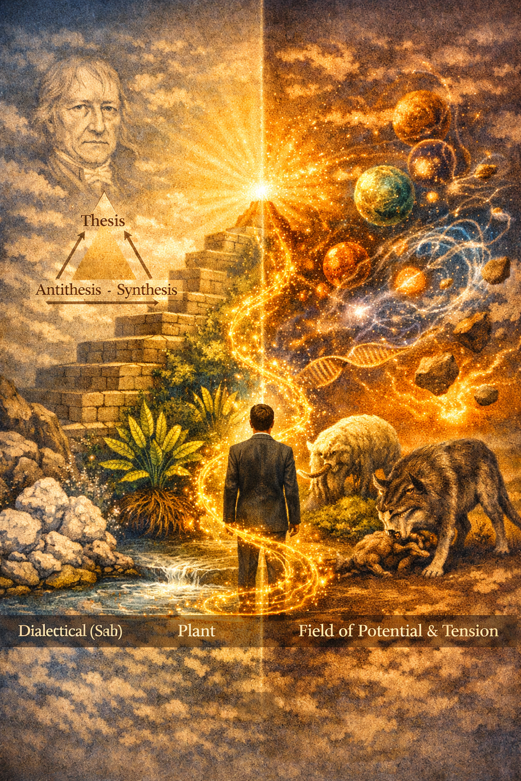 그의 글을 다시 읽어보자. "변환적 질서는 구체적인 모든 것을 보존하며, 정보의 보존으로 특징지어진다. 반면 귀납은 정보의 손실을 필요로 한다. 변증법적 행보와 마찬가지로 변화는 대립된 국면들을 보존하고 결합한다. 그러나 변증법과 달리 변환은 발생이 전개되는 틀로서 시간의 실존을 가정하지 않는다. 시간 자체가 해결이자 발견된 체계의 차원이다. 시간은 개체화가 그것들에 따라 수행되는 다른 차원들과 마찬가지로 전개체적인 것으로부터 나온다." 여기서 시몽동의 시간관과 헤겔의 시간관이 갈라진다. 헤겔은 시간이라는 흐름이 이미 있고 그 속에서 역사와 변화가 진행되나 시몽동에게는 변화가 시간 속에서 일어나는 것이 아니라 변화 과정 속에서 시간이 생겨난다.