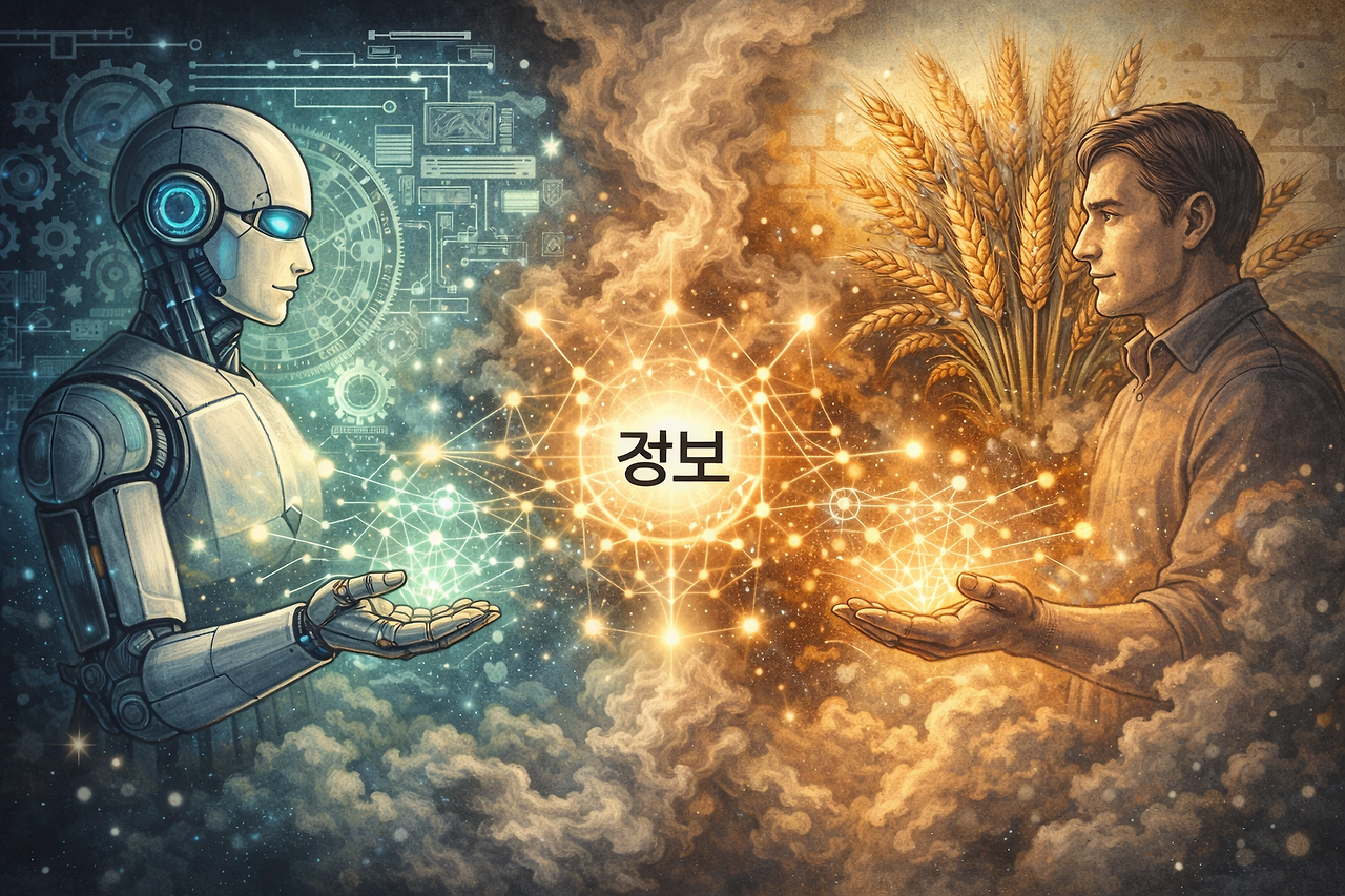 저자의 글을 읽어보자. "정보의 효율적 수용, 특히 이 경우에는 제작의 질서라는 이미 주어진 조건-개인 상호 간의 소통 속에서-에 의해 중개된 데서 유래한다. 두 사회적 실재들 사이의 이러한 소통, 기술적 적용의 조건에 해당하는 이러한 수용의 적용은 기술적 작용의 한가운데서 양극단의 형태들-형상과 질료-에게 상호소통을 가능하게끔 해주는 어떤 것을 감추고 있다. 이는 [감추어진 것은] 정보이고, 작용의 '지금, 여기'의 특이성이며 출현 도상에 있는 개체 차원에서의 순수 사건이다."
