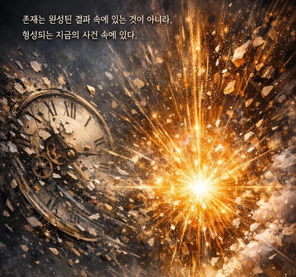 시몽동의 이야기를 압축한 가장 적절한 시가 떠오른다. 그 시는 로마의 서정 시인 호라티우스가 사용한 카르페 디엠이 나오는 구절이다. "Carpe diem, quam minimum credula postero, 오늘을 붙잡아라 내일을 너무 믿지 말라." 이 시는 바로 시몽동이 "개체는 완성된 결과가 아니라 형성되는 순간이다."라고 말하는 뜻과 연결된다. 존재는 완성된 결과 속에 있는 것이 아니라, 형성되는 지금의 사건 속에 있다. 상식의 눈으로 보면 이상하게 들리지만 조금만 마음을 비우면 시간은 시계의 시침이 표시한 위치의 공간 이동에 불과하고 실재하는 것은 지금만 존재한다. 그리고 지금이라고 하는 순간 이 지금은 <아까: 조금 전, 방금 전>으로 밀려난다.