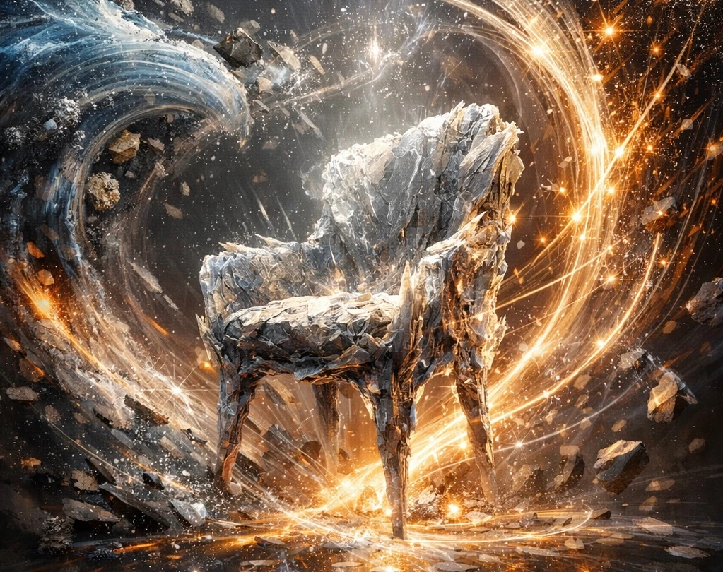 이 글을 다시 목조주택의 건축 과정으로 예를 들어보자. 목조주택을 짓는 경우에 설계도(형상)와 목재(질료)가 있어도 습도와 목재 상태와 장력과 연결 방식이 맞지 않으면 집은 건축되지 않는다. 즉 형상과 질료와 에너지 조건이 맞아야 건축이 발생되는 것이다. 시몽동은 이것을 '체계의 내적 공명'이라 부르는 것이다. 공명은 체계 내부의 요소들이 서로 맞물려 변화가 전체로 전달되는 상태이다. '퍼텐셜에너지가 현실화되는 동안 변환역학적 관계를 세운다.'는 말은 가능성으로 있던 에너지가 실제 구조로 바뀐다는 뜻이다. 개체는 관계 속에서 생기는 것이며, 그런 한 진정한 개체는 과정 동안만 존재하는 것이다. 그러면 결과로써 완성된 사물은 이미 끝난 과정의 흔적일 뿐 그것은 진정한 결과가 아니라 하락하는 결과가 된다. 사물은 이미 있는 형상 때문에 생기는 것이 아니라 재료와 조건이 공명하면서 잠재 에너지가 구조로 변하는 과정 속에서 생긴다. 그리고 그 과정이 바로 진짜 개체이다,