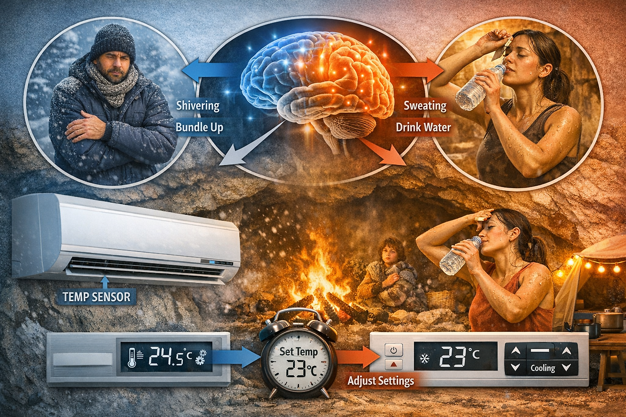 이제 주요 개념들을 살펴보자. 베르나르는 누구인가? 클로드 베르나르(Claude Bernard, 1813–1878)는 19세기 프랑스의 생리학자로 그가 발견한 내부환경 (milieu intérieur)이란 세포들이 살아가는 몸속의 액체 환경 즉 혈액, 림프액, 세포외액 등의 체액을 말한다. 그는 “생명의 자유는 내부환경의 안정성에 달려 있다.”라고 말했으며, 이런 발견은 신경과학에서 생명체의 항상성(homeostasis: 몸속 상태를 적당하게 유지하려는 자동 조절 시스템, 체온조절과 혈당조절과 수분조절이 자동으로 일어나서 옷을 입거나 당을 섭취하거나 갈증을 느끼는 행위로 연결됨)과 뇌의 작용을 연결하는 주요 신경과학적 원리가 된다. 에어컨의 온도 센서 감지 시스템으로 이해하면 쉬울 것이다.