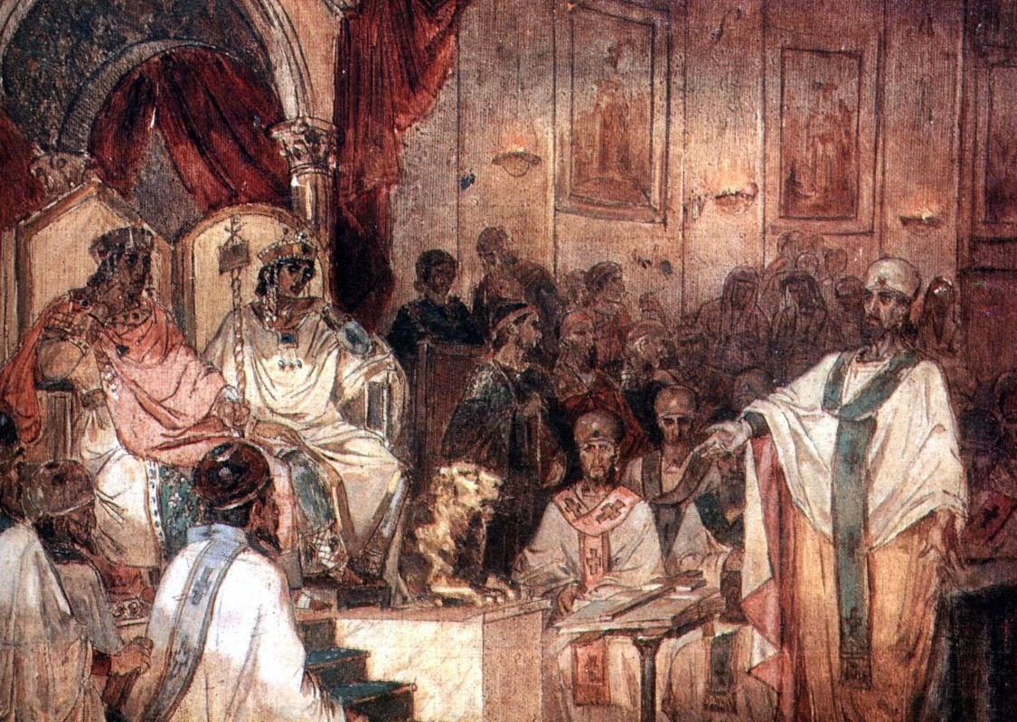 콘스탄티누스 황제는 소위 안디옥학파와 알렉산드아학파의 이념적 대립 속에서 지식인층이 결집된 알렉산드리아학파의 손을 들어주었는데 이는 종교적이라기보다는 다분히 정치적인 결정이었는데, 왜냐하면 그 학파가 주장하는 예수의 신성을 포함한 삼위일체설과 양성론이 예수의 인간성을 중요시하는 안디옥학파보다 더 제국의 통치이념에 유리했기 때문이다.