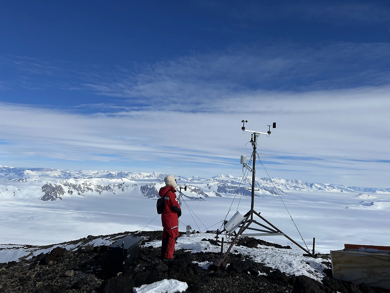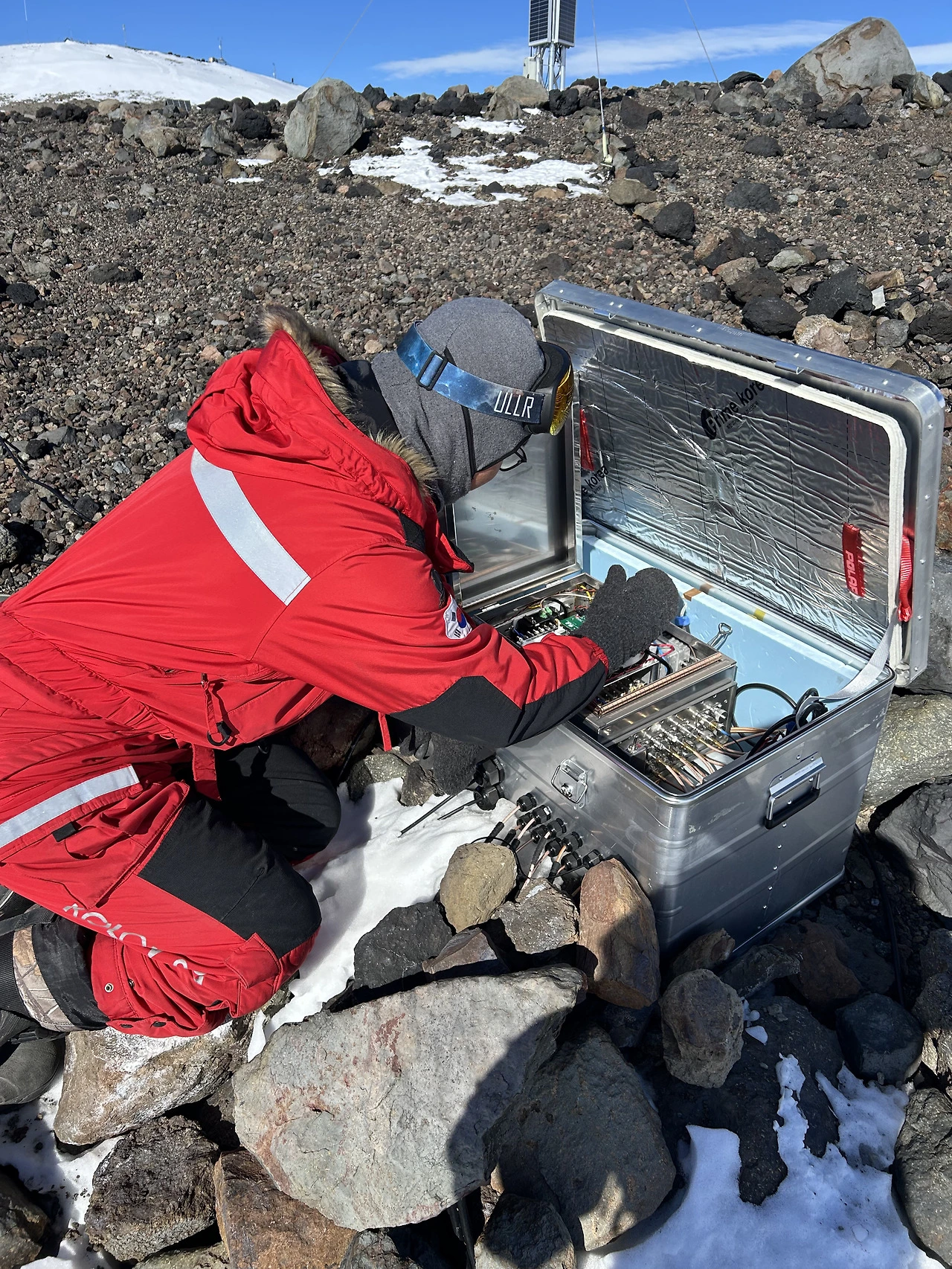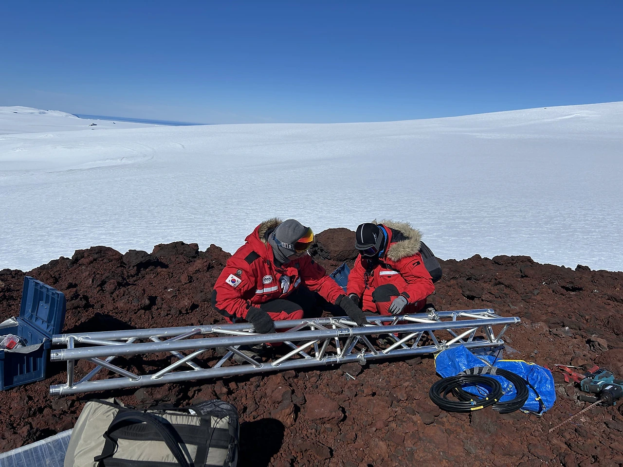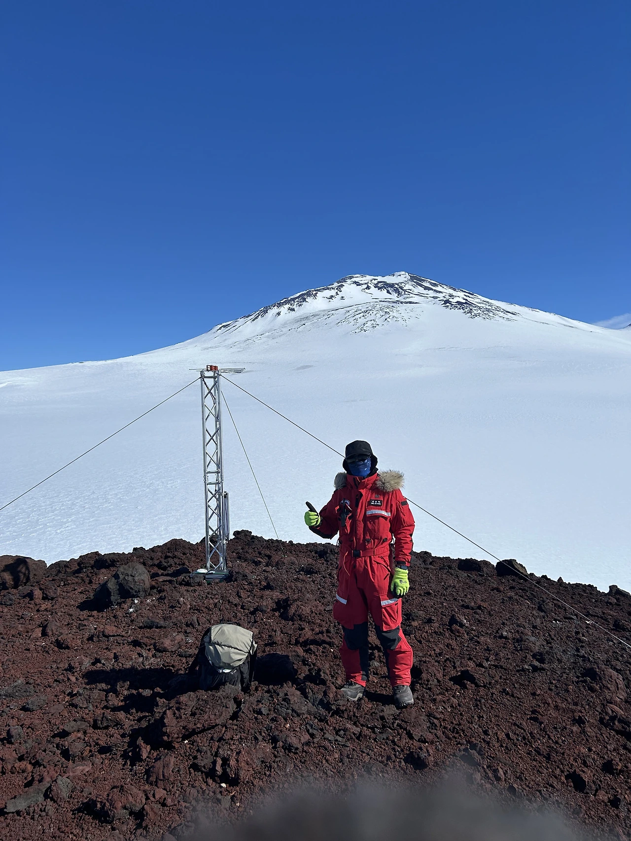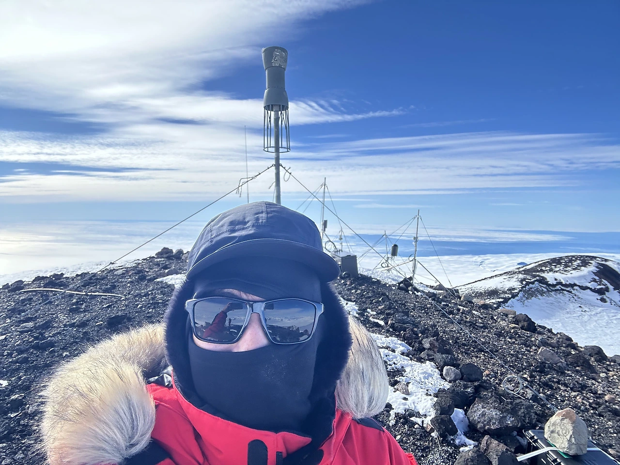 2025년 마지막 날 멜버른 화산 정상의 온도는 영하 17.5도에 풍속은 17노트(31 km/h)였다. 심지어 돌풍이 불면 20노트(37 km/h)까지 풍속이 올라갈 수 있다고 했다. 이렇게 극한 환경에 노출되어 있기 때문에 그나마 접근이 가능한 여름에 주기적으로 점검 및 확인을 해야 한다. 타워를 지지하고 있는 로프의 강도를 점검하고 약하면 탄탄하게 더 조여준다. 그리고 타워 베이스에 쌓인 눈을 제거하기도 한다. 인공위성과 연결된 기기는 두꺼운 방한 박스 안에 들어 있는데, 이들도 하나하나 열어 신호상태를 확인한 후 테이프로 다시 잘 밀봉해야 한다. 바람에 날아가는 걸 대비해 추가 고정 작업도 필수다. 별거 아닌 작업처럼 들릴 수도 있겠지만 남극에서는 매우 고된 작업이다. 춥고 바람도 많이 불어서 코와 입을 막고 있어야 하기 때문에 안 그래도 숨쉬기가 힘든 멜버른 정상에서는 이 작업이 더 고될 수밖에 없다.