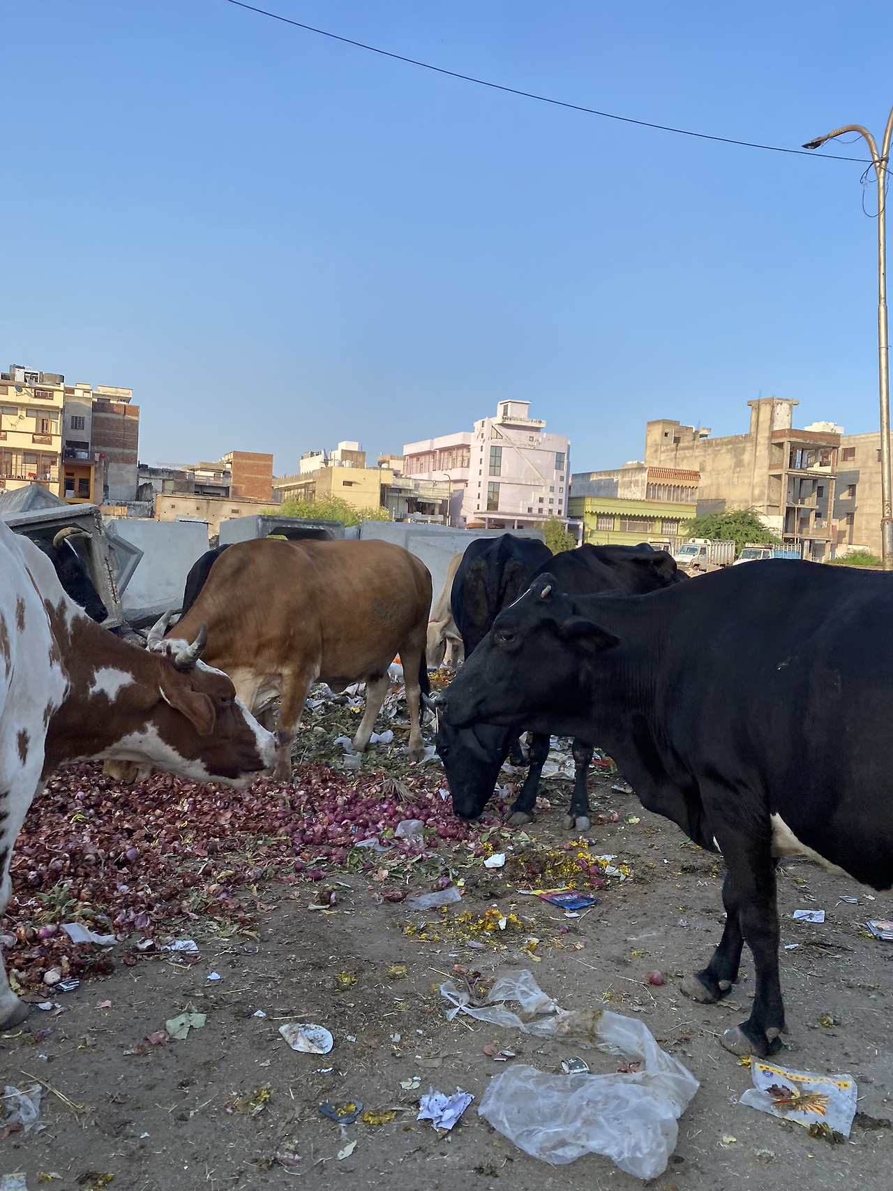 소가 쓰레기를 먹어도 괜찮은 거냐며 인도 친구에게 물어보니 어떻게 여물만 먹겠냐며 쓰레기장을 뒤지는 건 사람으로 치면 가끔 불량식품을 먹는 것과 같다고 설명해줬다.