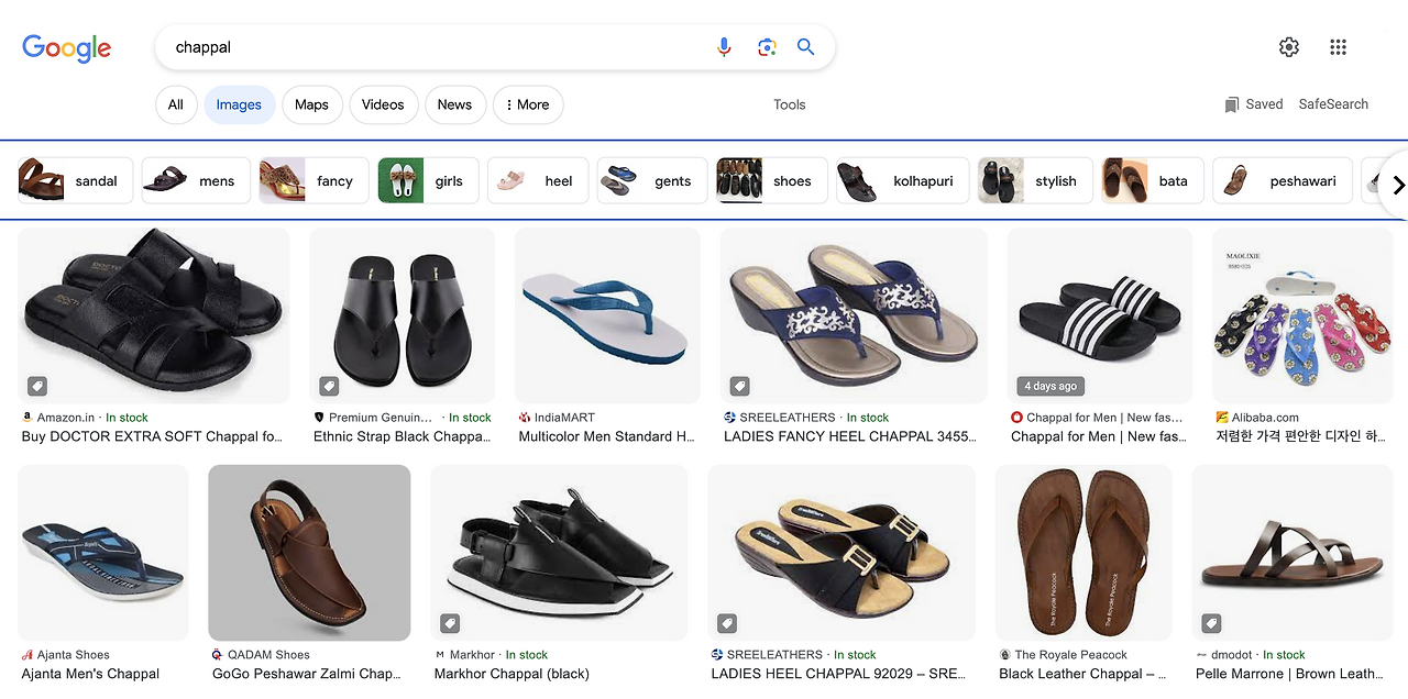 쪼리는 힌디로 짜빨(Chappal)이라고 하는데, 구글에서 짜빨이라고 검색하면 이런저런 여름용 쪼리, 슬리퍼 사진을 볼 수 있다.