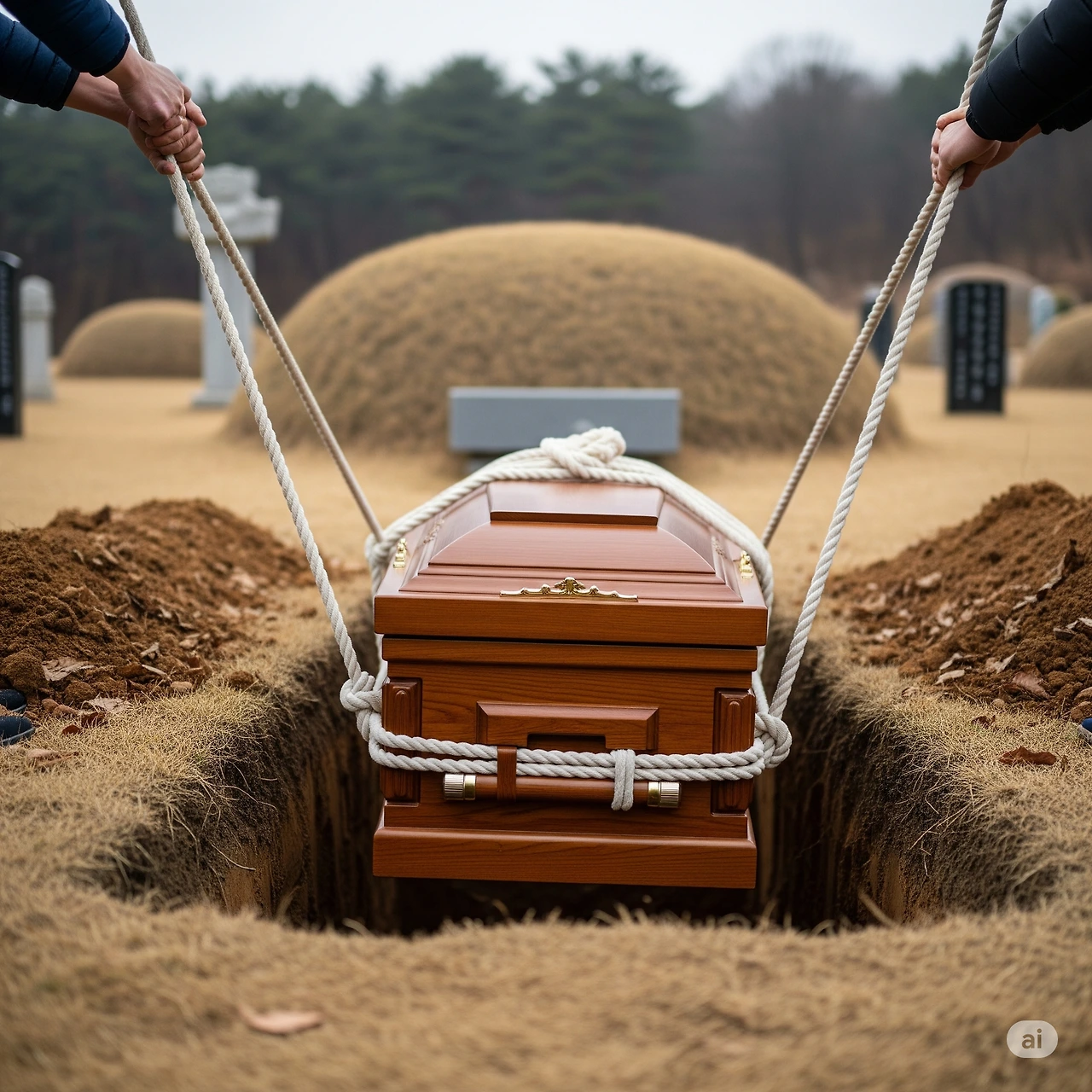 아빠의 관이 천천히 땅속으로 내려가고 있었다.