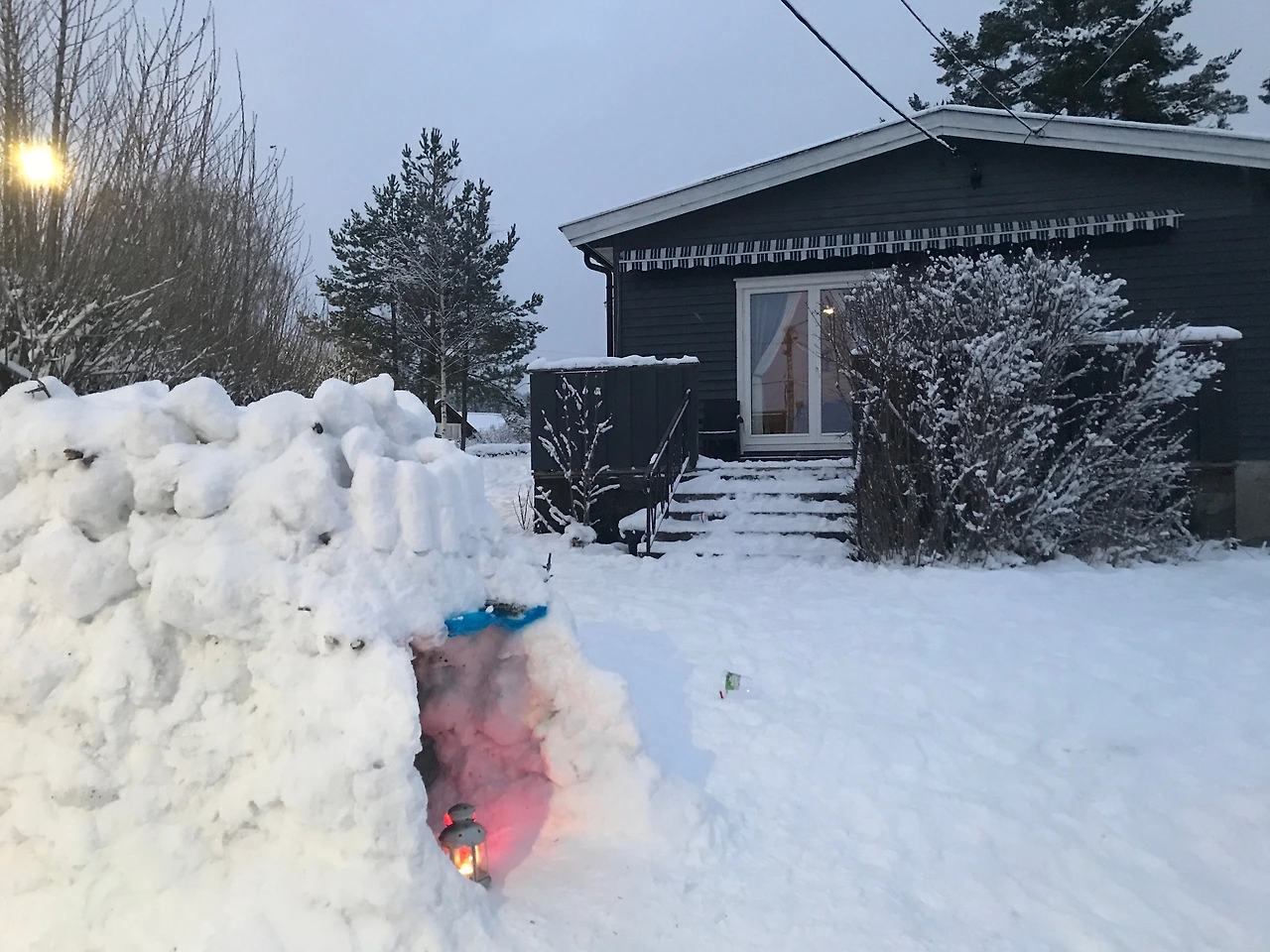 눈은 매일 같이 쏟아지고 스키센터 옆에 사는 우리집이 있는 동네는 눈을 치우기가 하루 일과 시작과 끝이다. 날씨가 영하 15도 -21도로 떨어지기에 얼어버리면 너도 나도 불편하기 때문이다. 얼어붙은 바닥에 넘어지는 일이 우리에게 끊임없이 일어났다. 주말이나 방학에 눈이 너무 많이 내리는 날에는 아이들이 하루종일 눈썰매를 타고 스키를 타며 마당에 이글루를 만드는 신기한 일이 생긴다. 심심할 틈이 없다. 저녁이 되면 어두워서 아이들은 저녁 8시에 잠이 든다.