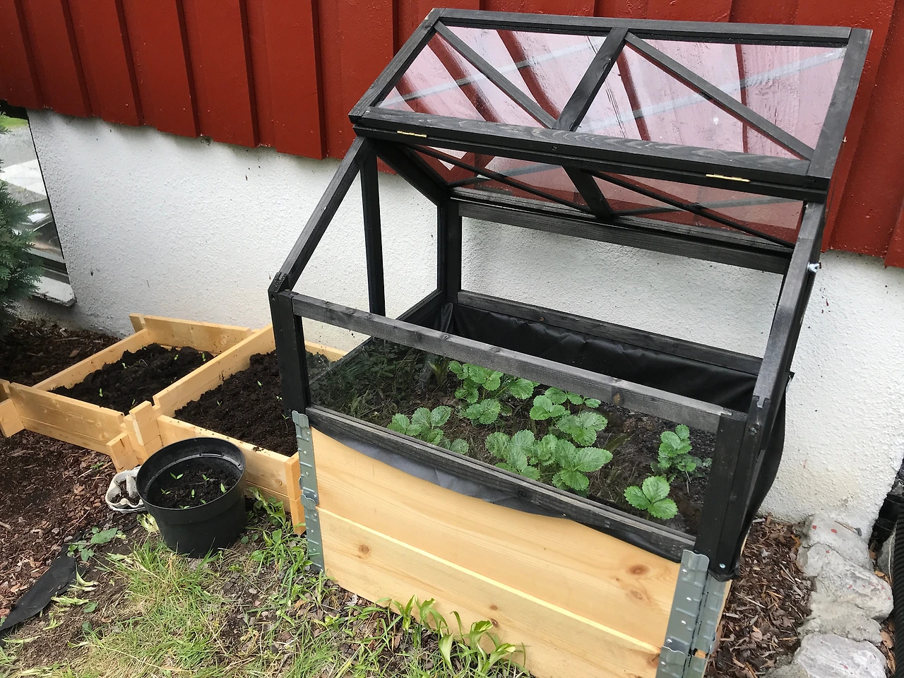 5월이 되어 눈이 녹았다. 이번에는 깻잎을 키워보리라 작정을 하고 심었는데 집안이 추워 싹이 나오지 않았다. 지인이 계란판에 싹을 틔워 준 것은 추운 집안 공기에 살아 남지 못했다. 다시 부탁해서 12 뿌리를 받아서 집에서 제일 따뜻한 온돌바닥이 있는 화장실에 두었더니 지난번에 심었던 씨앗도 발아하고, 싹이 자라기 시작하였다. 그렇게 한참을 키워 마지막 눈이 내린 5월 말에 바깥에 설치해둔 온실에 내놓았다.