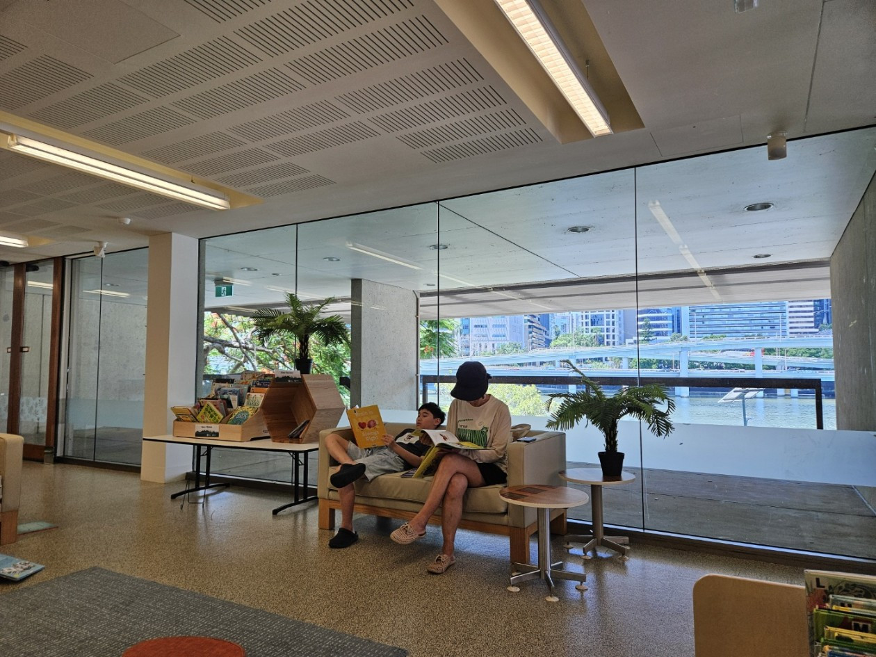 퀸즐랜드 도서관은 일반 도서관과는 다른 형태로 2층이상부터는 갈 일이 거의 없게 생긴 도서관이지만 1층에는 아이들이 책을 읽을 수 있는 공간들이 있다.