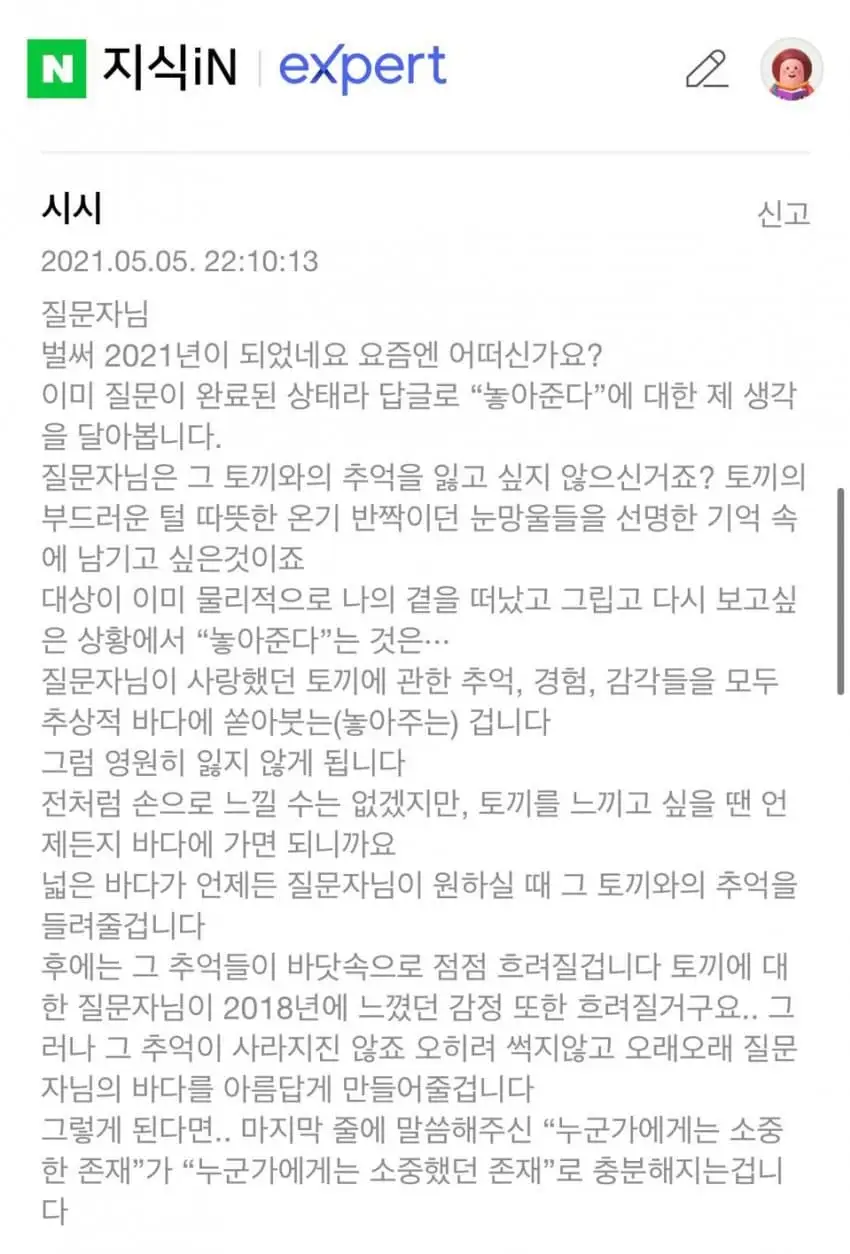 그 토끼도 누군가에게는 소중한 존재라는 걸