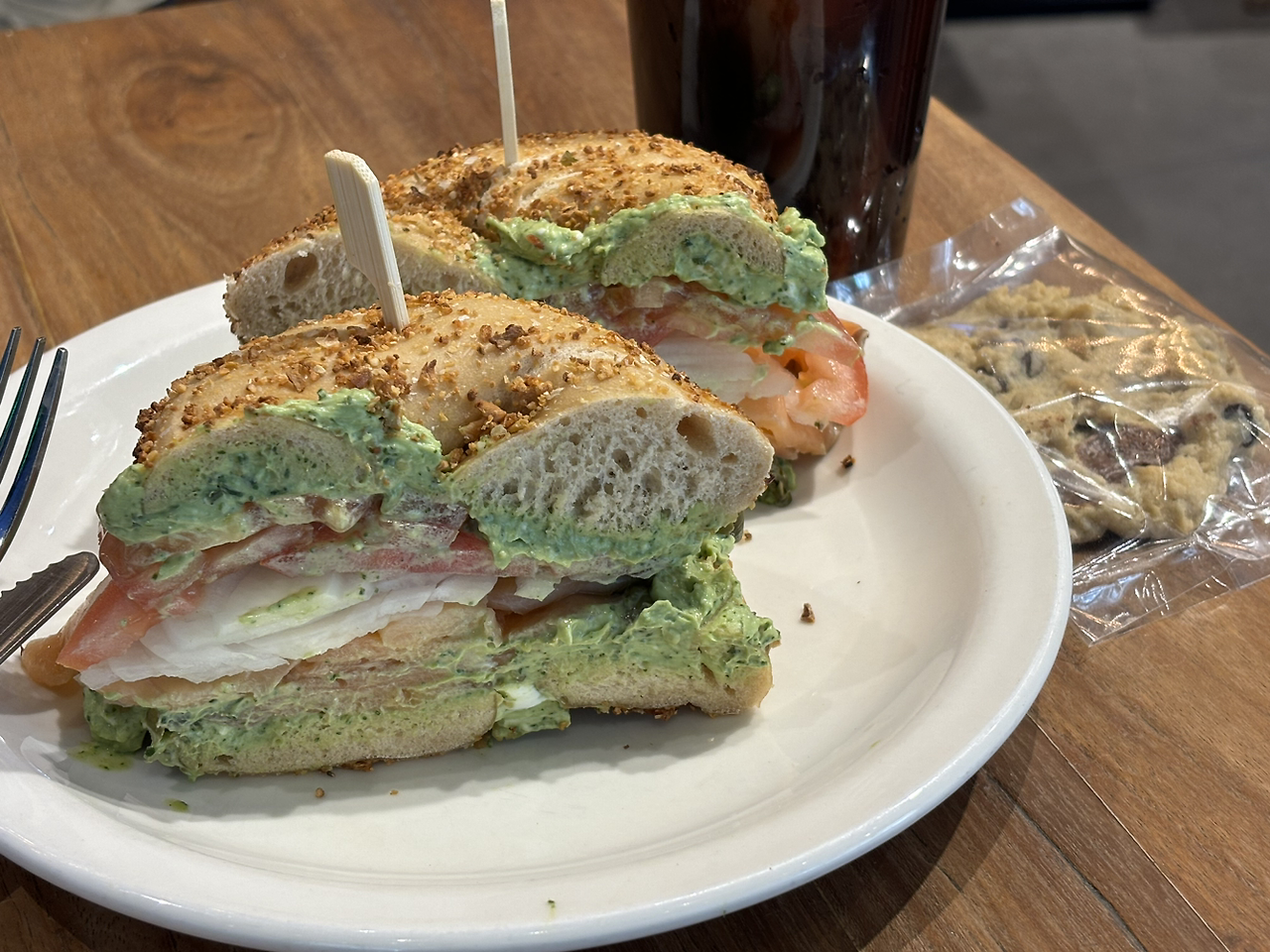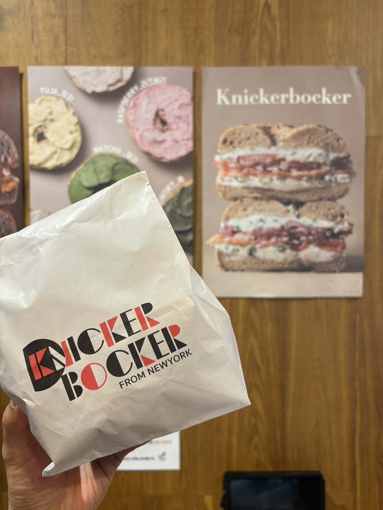 나는 네이버 지도에 가고 싶은 곳을 저장해 두는 습관이 하나 있다. 마침 석촌호수 근처에 니커버커베이글이 있는 게 아닌가!!! 기쁜 마음에 바로 달렸갔다. 여기서 나의 성격이 하나 더 나온다. 가고 싶었던 곳은 맞지만 사실 무슨 메뉴가 유명한지는 모른다. 생각보다 많은 종류, 품절 메뉴도 많아서 눈에 들어온 메뉴 중 마음에 드는 걸 선택하고 주문했다. 생각보다 비싼 가격에 조금 놀랐지만 맛만 있다면 이 정도 금액은 충분히 낼 수 있다. 하지만... 맛이 없다면 슬플 것 같았다. 메뉴가 나오자마자 입이 떡 벌어지는 비주얼에 일단 합격점을 줬다. 나이프로 잘라 교양 있게 먹으려 했지만 베이글 녀석이 꽤 질겨 난장판이 되어버렸다. 사진으로 남기지 않은 게 조금 아쉬운 순간이었다. 반쪽을 교양 있는 사람(?)처럼 먹고 나머지 반쪽은 양손으로 들고 우걱우걱 먹기 시작한다. 아~ 진짜 "존.맛.탱." 커피 사이즈 업까지 한 나 자신을 칭찬하며 행복한 시간을 보냈다. 이 맛있는 걸 혼자 먹는 게 아쉬워 연락하고 있던 사람들에게 물어본다. "베이글 좋아해? 좀 사다 줄까?" 그렇게 다른 사람을 위한 베이글도 포장하는 오지랖쟁이.