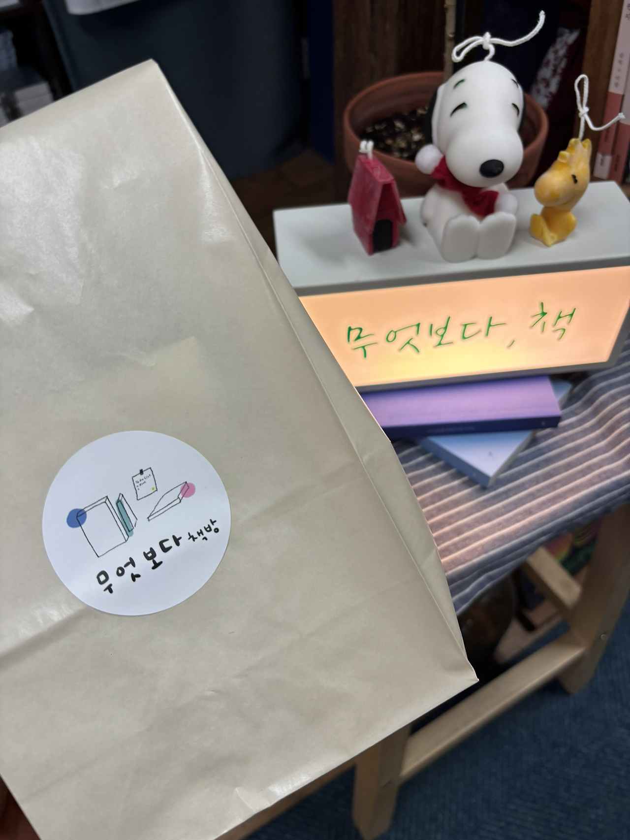 약속 시간이 얼마 남지 않아 송리단길 쪽으로 무작정 걸어가기 시작했다. 역시나 무계획이 계획인 나는 여기저기 기웃기웃거리다가 문득 독립서점을 찾았다. "무엇보다 책방" 책방 이름부터 너무 마음에 들지 않는가? 약속 시간이 얼마 남지 않은 조급함에 부지런히 발걸음을 옮겼다. 책방을 가면서 월세도 비쌀 텐데 어떻게 독립서점이 이곳에서 유지가 가능한지 의아했다. 근처에 도착해 서점을 찾는데 시간이 조금 걸리고 들어가 보니 어떻게 여기에서 버티고 있는지 조금은 이해가 됐다. 내부는 다른 독립서점과 크게 다르지 않은 무난한 느낌의 서점이었다. 큐레이팅된 책들 위주로 책을 들었다 놨다 하면서 빠르게 서칭을 시작했다. 그렇게 신기한 책을 하나 발견했다. 책 사이드에는 제목이 있지만 겉표지가 무지였다. 제목도 그림도 아무것도 없는 책, 신기한 책을 펼치니 작가가 직접 쓴(?) 문구가 있었다. 책을 몇 장 넘기지 않았는데 이 책을 사기로 '확신'이 들었다. 바로 "일기"에 대한 책이었기 때문이다. 최근 관심사 중 단연 최고는 역시 일기다. 그런 누군가의 일기를 우연히 발견했는데 사지 않는다면 꿈에 이 작가님이 나와서 혼낼 것 같은 느낌이다. 그렇게 우연한 일기를 하나 가지고 친구를 만나러 향하는 발걸음은 이미 두둥실 두둥실 신이 나있었다.