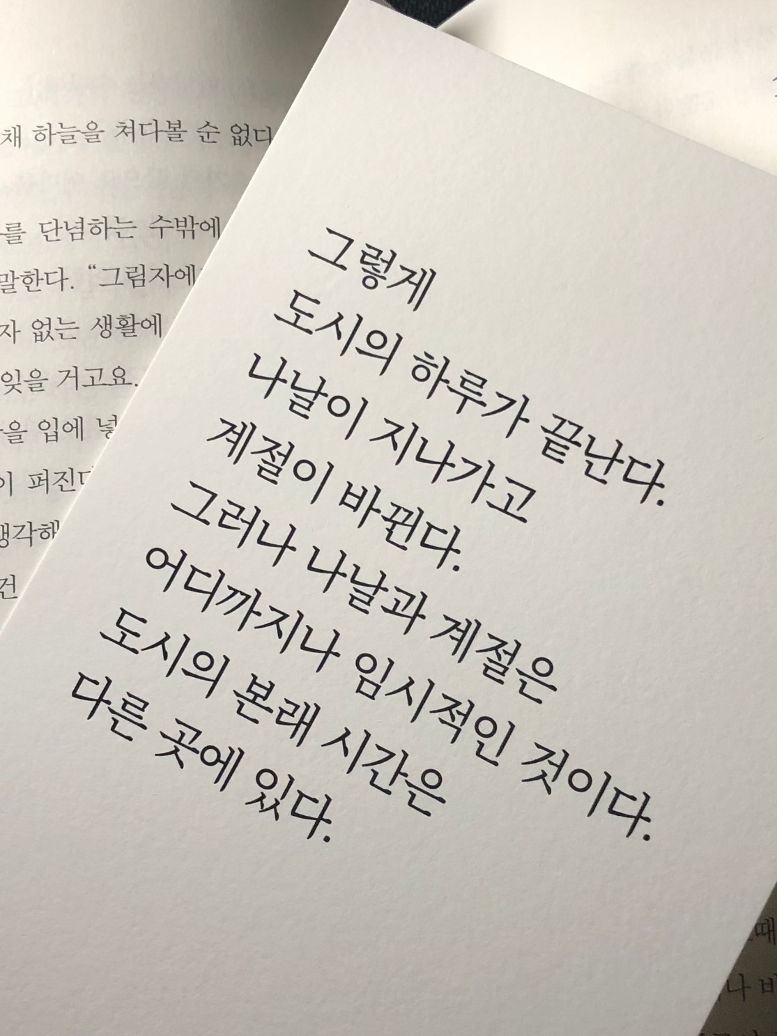 무라카미 하루키의 거리와 그 불확실한 벽에 나오는 문장입니다. 거리의 본래 시간은 다른 곳에 있다. 그러면 이 중요한 시간은 과연 어디에 있을까요..