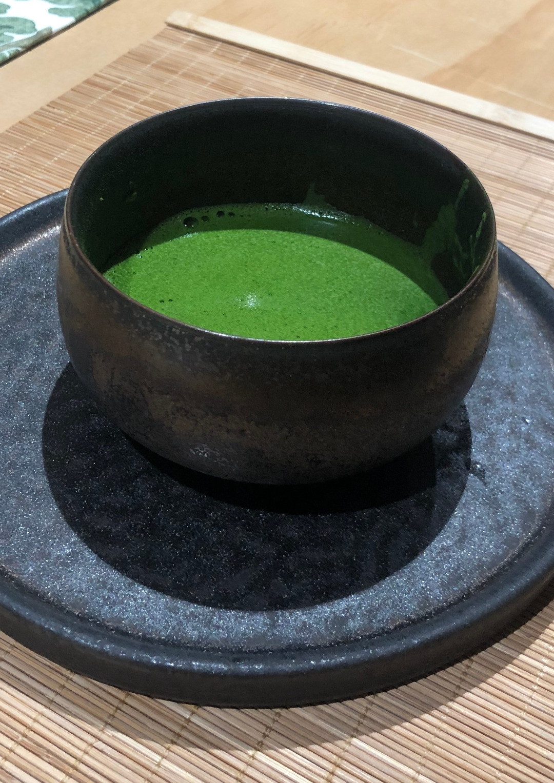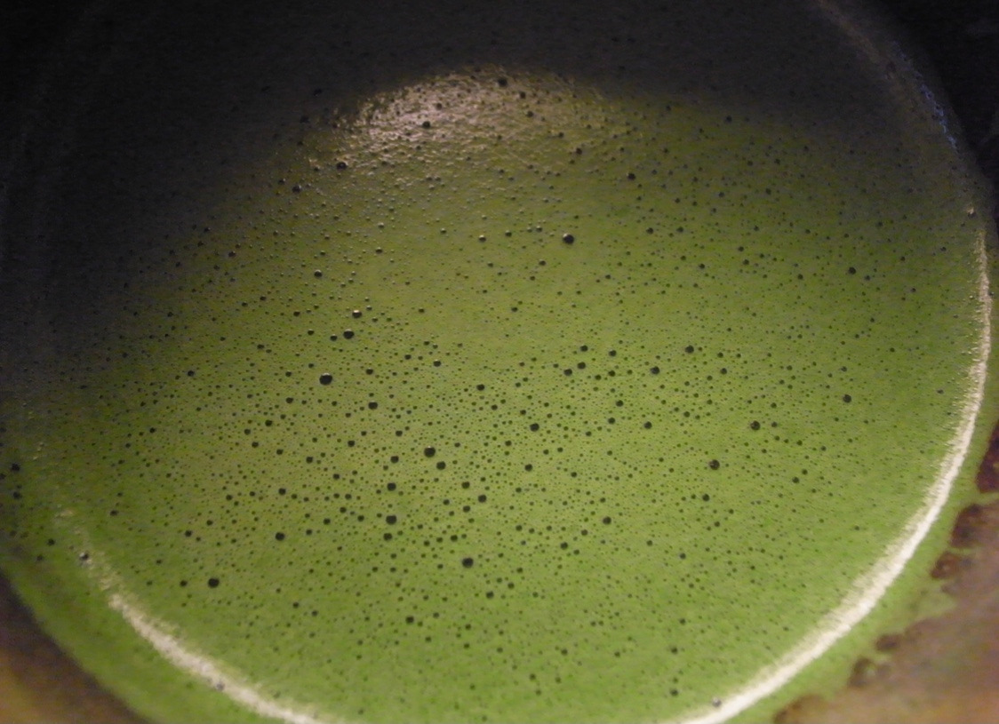 오늘의 차는 하동의 어린쑥차 말차의 여운과는 다른 녹색의 냄새. 은은하면지도 진한 향기가 들어온다. 격블에서 오는 냄새가 은은하게 스친다. 스미는 동안의 정적. 공간의 시간. 시간속의 공간에서의 정적은 곧 여유와 형으로 다가온다. 다도에서의 형은 매우 중요하다. 그것을 데마에(手前)라고 부른다. 직역한지면 손의 앞 즉, 차를 받는 타에게 가장 공손하고 아름다운 부분을 공손하게 넘긴다. 차는 공손하게 조심스럽게 받는다. 우케이레(受入れ)이 순간의 전달은 곧 마음이 전달이다. 전달된 마음은 마음으로 전해진다. 차 마실 준비가 끝났다.