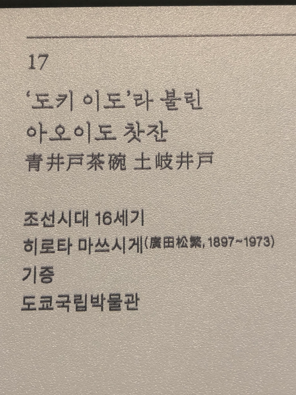 16세기 무렵 일본에서는 공간과 도구를 갖추고 차를 대접하는'차노유(茶の湯)가 성행했다. 이 시기에는 조선이나 일본 각지에서 만든 꾸밈없는 도기가 다도 도구로 새롭게 조명받았다. 완벽한 형태를