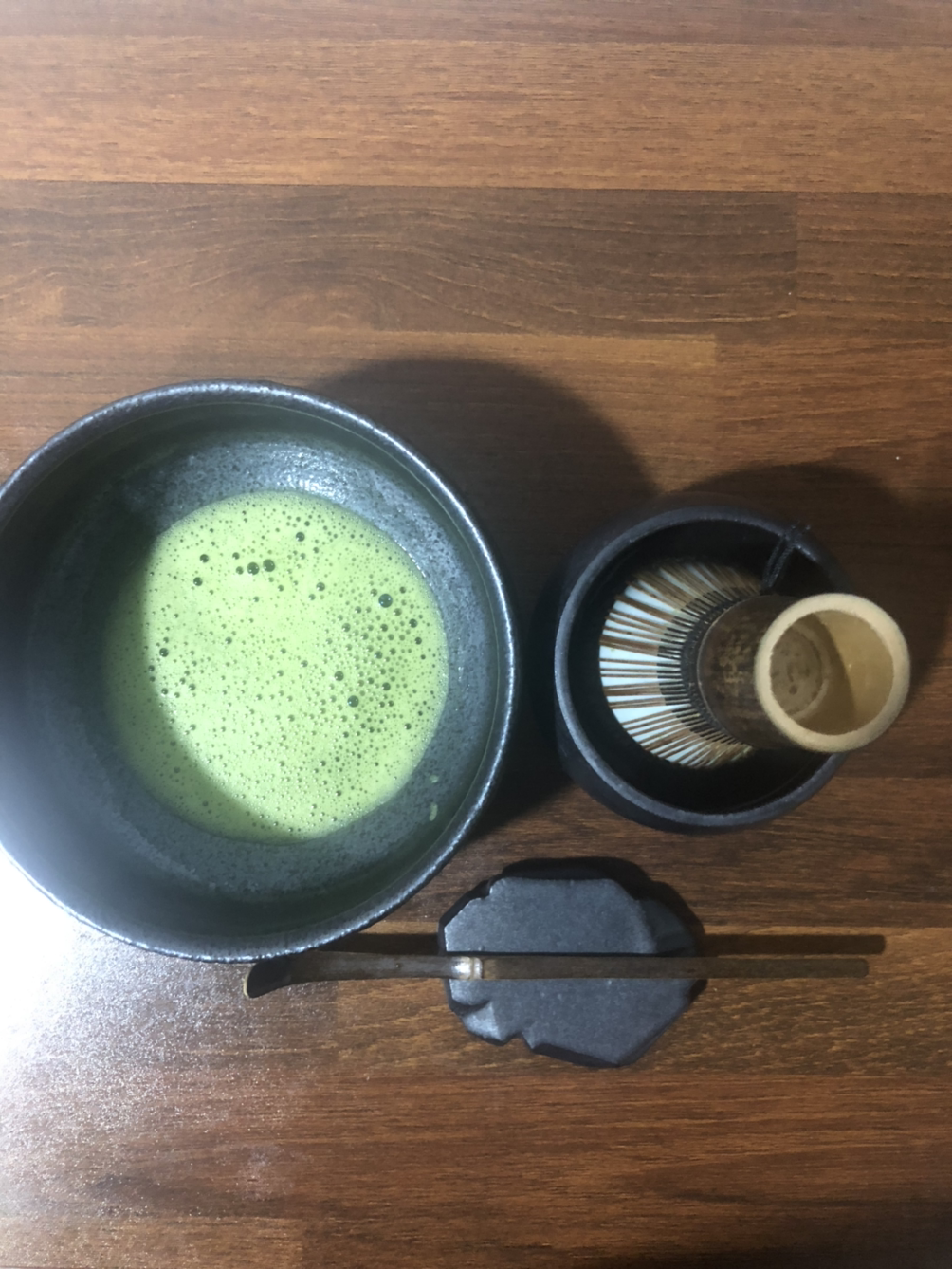 내 취미 생활 중 가장 은밀했던 것이 바로 말차다. 말차는 원래 중국의 당나라 시절 녹차를 마시던 문화에서 유래하는데, 당시엔 녹차를 유통하기 위해 단단한 형태로 굳혔고 차를 마실 때는 그때그때 조각을 내서 찻물에 넣고 우렸다. 그러나 찻잎은 뜨거운 물속에서 색이 갈변하므로 가루를 물에 개서 마시는 형태로 발전하게 되는데 이것이 오늘날의 말차이다.