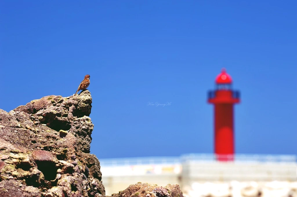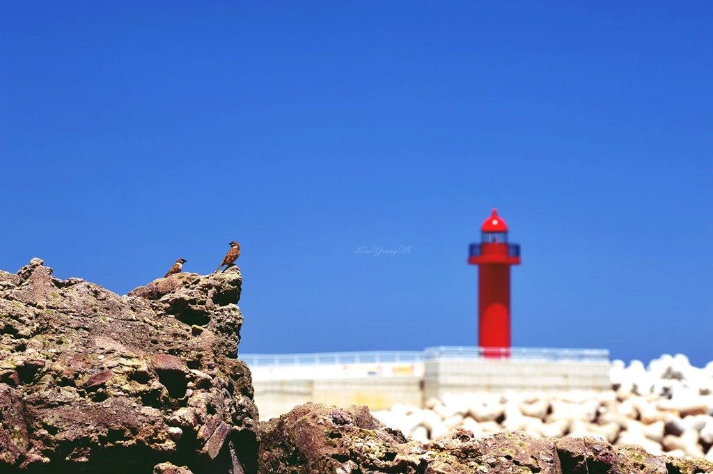 시선 끝에는 빨간 등대가 있다.