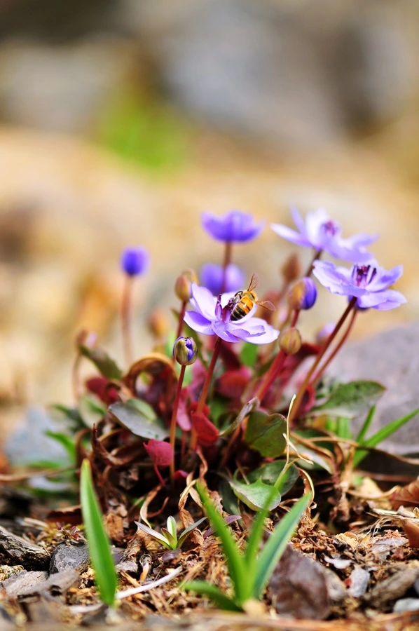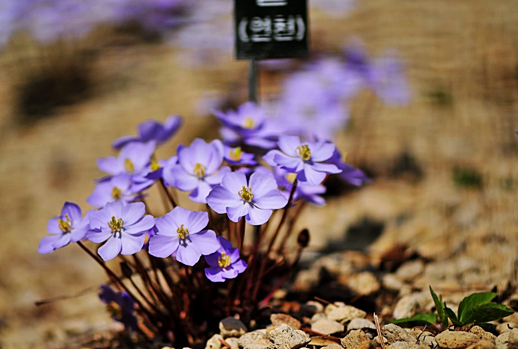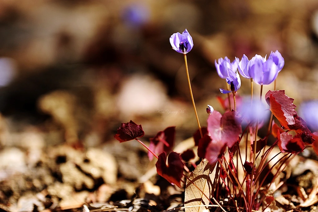 깽깽이풀. 깽깽이풀이 피어나는 모습을 보고서도 심장 뛰는 소리가 들리지 않는다면 비정상이라고 누군가 말했다. 야생화를 좋아하는 사람이라면 깽깽이풀을 좋아하지 않을 수가 없다. 그만큼 매혹적인 꽃이다. 모내기가 한창인 농사철에 깽깽이를 켜며 놀자고 유혹하듯 하늘거리며 꽃을 피운다고 바쁜 일손에 짜증 난 농민들이 천박스럽게 붙여준 이름이라는 재미있는 유래가 있다. 하늘하늘 연보랏빛 치마를 입은 아가씨 같은 꽃.