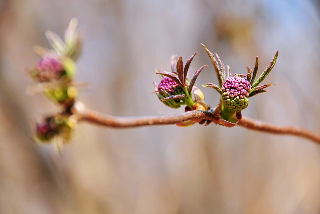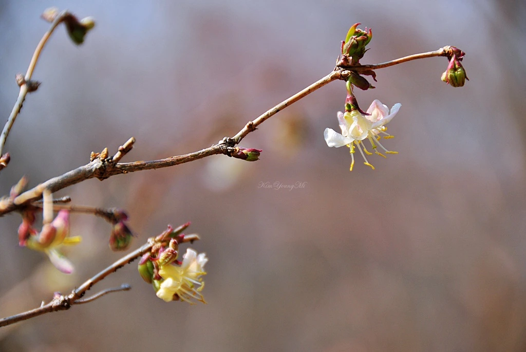 길마가지나무. 은은한 향기를 가진 꽃이다. 진한 향기가 길을 가는 사람의 길을 막았다고 길마가지나무라는 이름이 유래되었다는 설이 있다. 혹은 붉게 물드는 가을 열매가 소나 말의 등에 업는 길마를 닮았다고 그렇게 부른다고도 한다. '숲 속의 발레리나'라는 예쁜 별칭도 있는데 꽃을 가만히 보고 있으면 저절로 수긍하게 된다. 노란 토슈즈를 신고 사뿐사뿐거리는 발레리나 같다. 그래서 꽃말도 '소녀의 꿈'일지도 모르겠다.