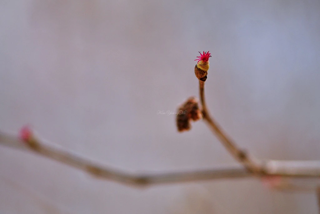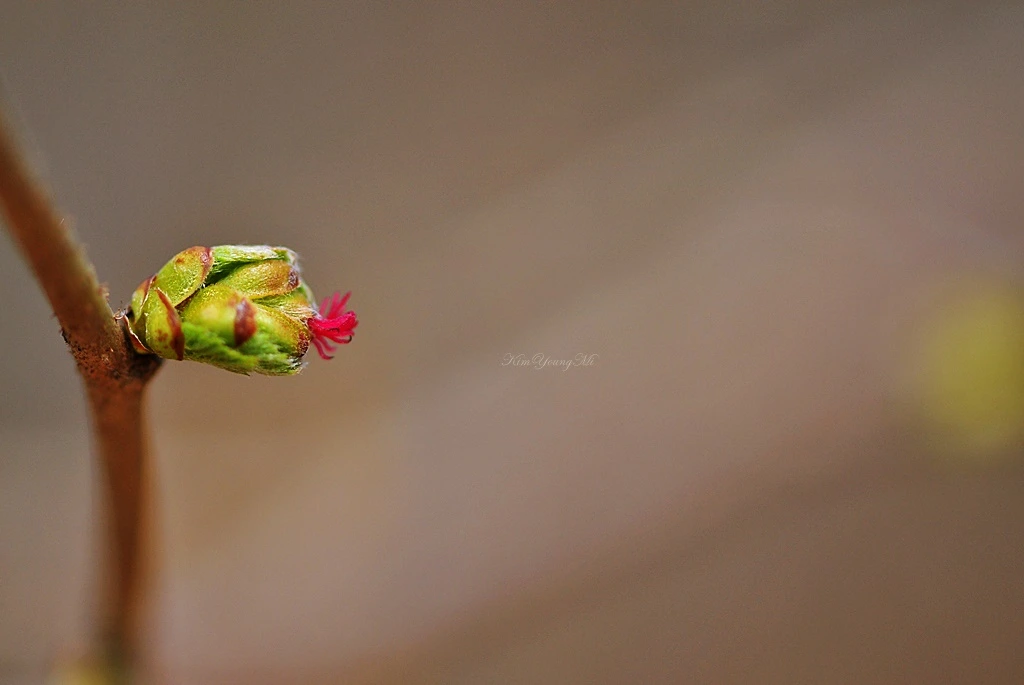개암나무 암꽃. 꽃은 3월에 잎보다 먼저 핀다. 붉은 촉수를 가진 해변말미잘을 닮은 암꽃과 전혀 다른 모양의 수꽃이 한 나무에서 피는 것이 특징이다. 개암나무 열매는 흔히 헤이즐넛이라고 불리는 열매이다. 열매는 얼핏 보면 도토리를 닮았다. 도토리와 마찬가지로 다람쥐의 소중한 먹이가 된다. 다람쥐뿐 아니라 사람들에게도 유용한 식재료로 쓰인다고 한다.