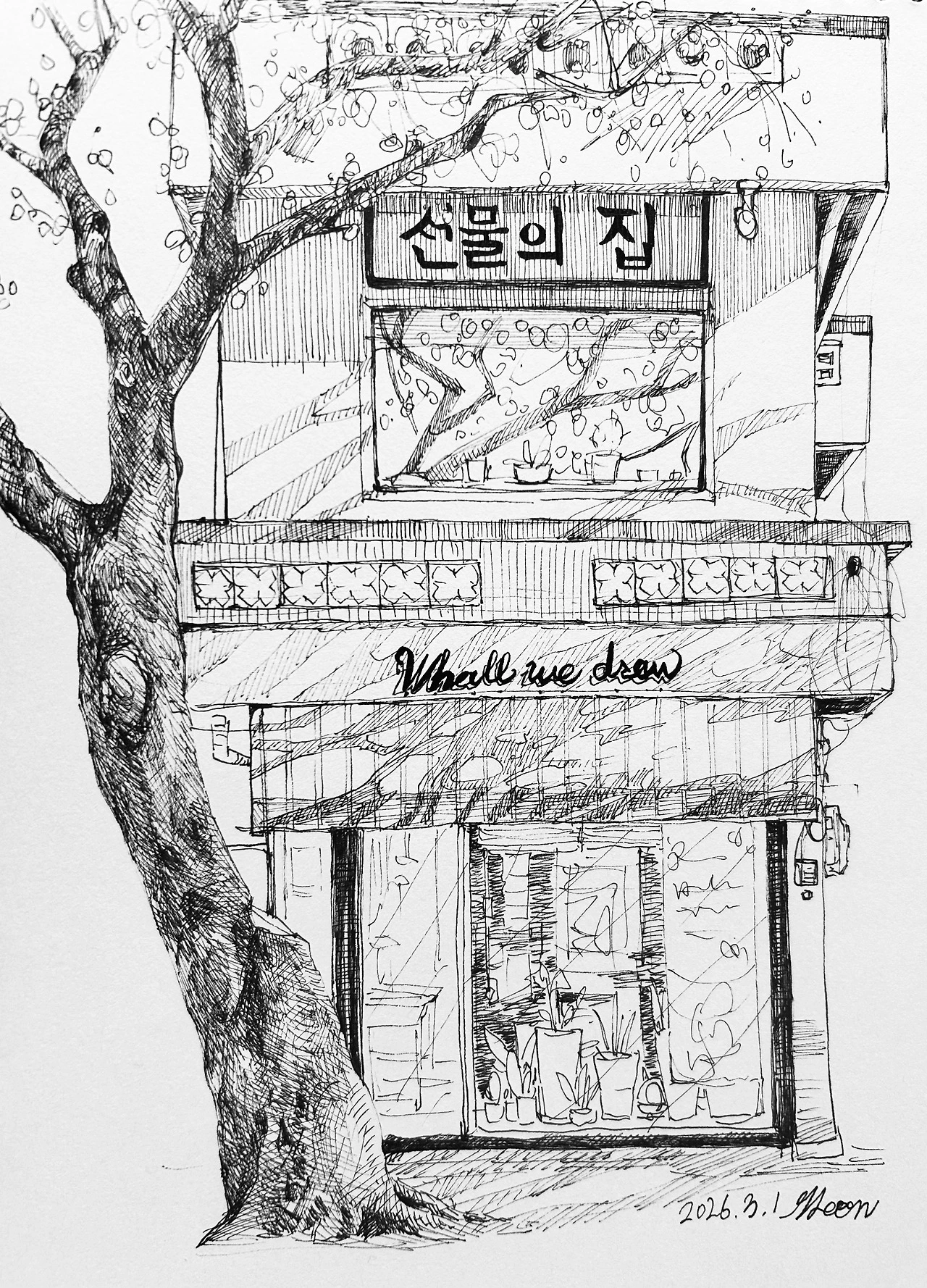 빛이 지 마음대로 들고, 그 아래엔 작은 책상 하나와 너저분한 물감들, 그리고 수많은 이야기들이 머물다 떠나길 반복하면 좋겠다.