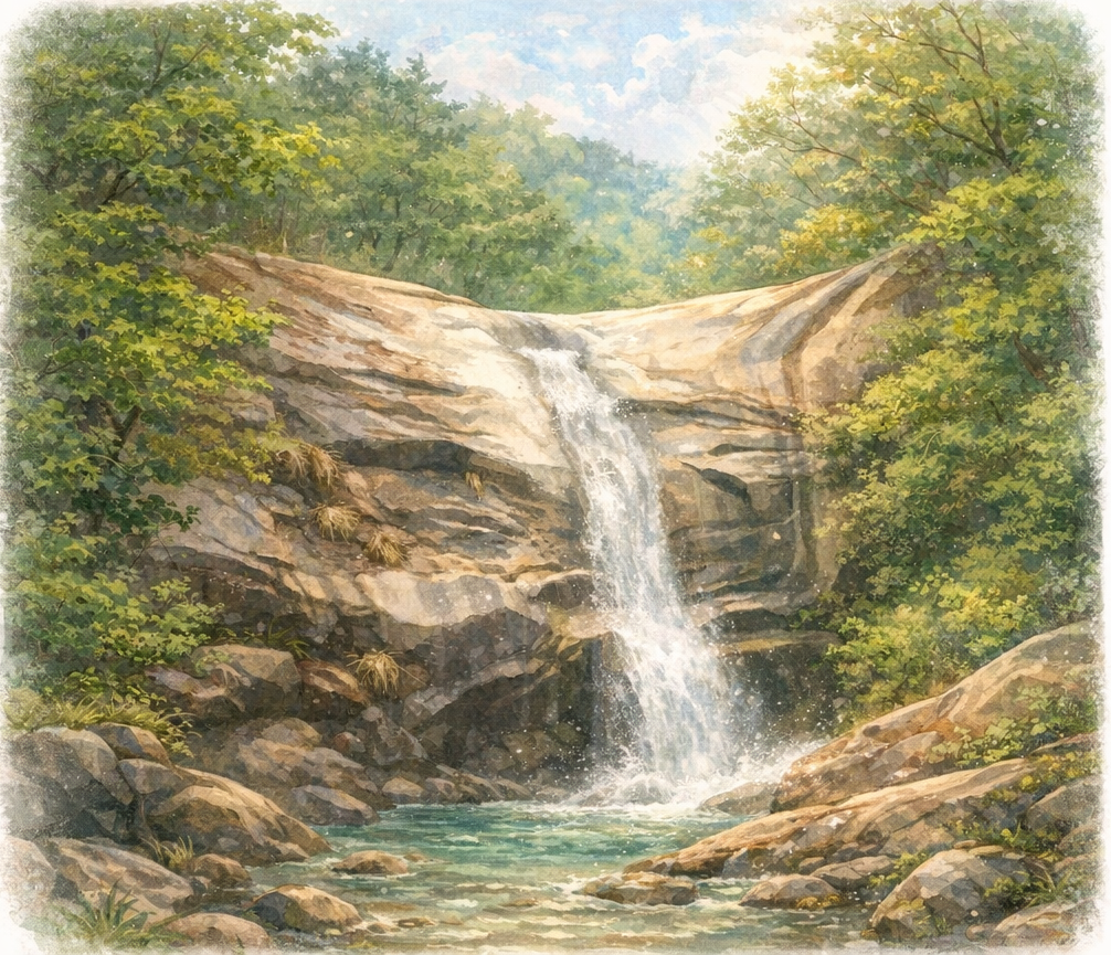 폭포 소리와 친구들의 웃음소리, 따뜻한 봄바람이 마음속에 조용히 머물렀다.