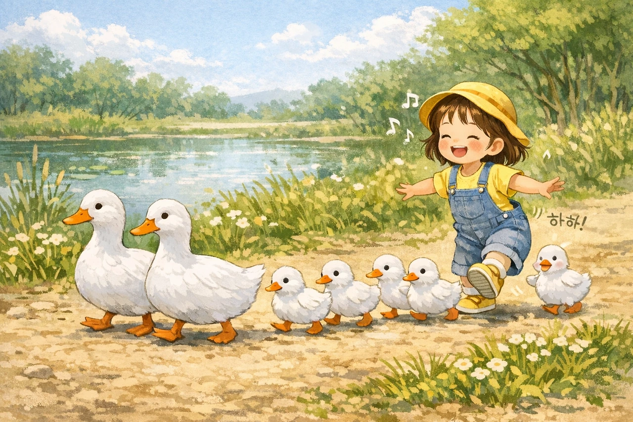하지만 별이의 마음속에는 냇가를 따라 걸어가던 오리 가족의 뒤뚱뒤뚱한 걸음과, 반짝이는 물 위를 헤엄치던 그 평화로운 풍경이 오래오래 따뜻하게 남아 있다.