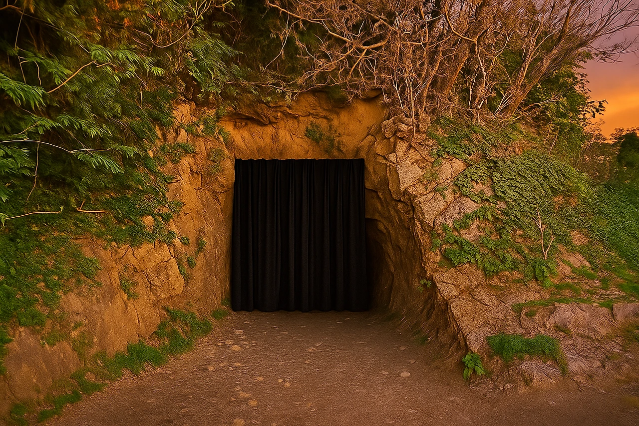 언니의 말대로 멀리 가지 않아 놈의 동굴이 보였다. 하지만 이건 정말 말도 안 되는 상황이었다. 이런 행동을 설명할 만한 이유는 단 한 가지도 없었다. 하지만 나는 이미 언니를 따라 바위 뒤로 몸을 숨겼다. 옆으로 비켜 보면 동굴의 입구가 보였다. 천막을 반쯤 걷어 고정시켜 놓은 것을 보니 아마도 안에 있는 듯했다.