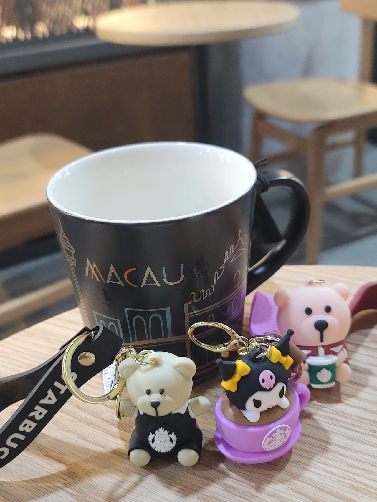 언니가 산 머그컵과 내가 구매한 귀여운 키링 세 개 ㅎㅎ