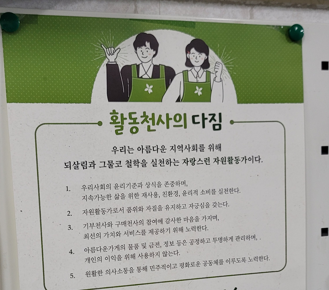 (이곳에서 봉사하는 사람을 활동천사라고 칭하고, 기증하시는 분들은 기부천사라고 칭합니다. 이름조차 스윗합니다 ㅎㅎ)