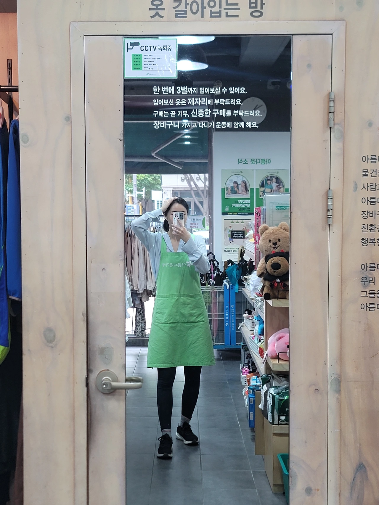 그전에 매장 정돈에 힘쓰고 오픈이 되면, 계산대에 구매하시는 분들의 구매활동을 돕거나 기부하시는 분들의 기증물품을 확인하고 접수를 도와드립니다.